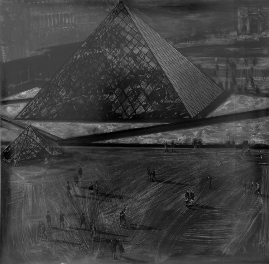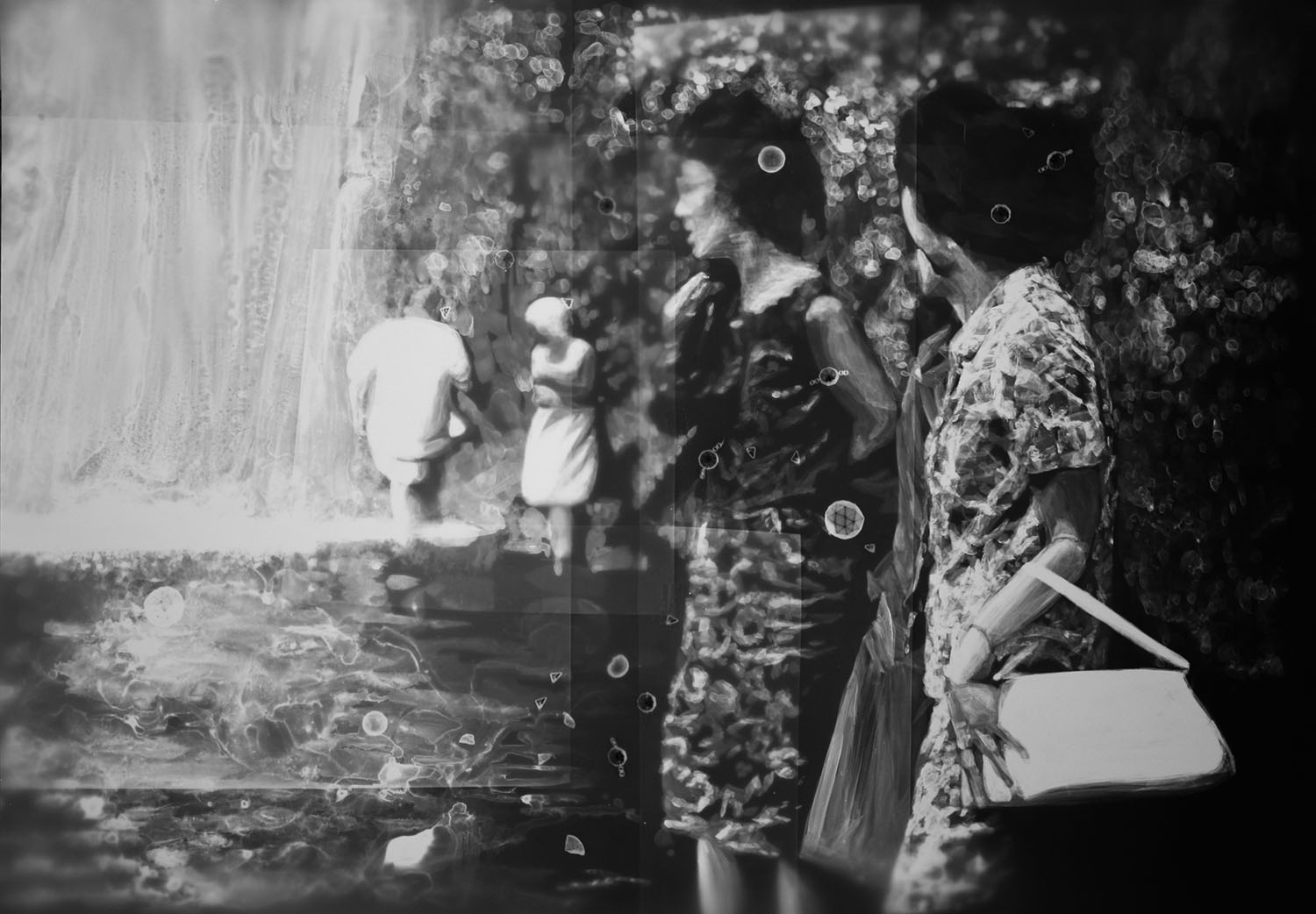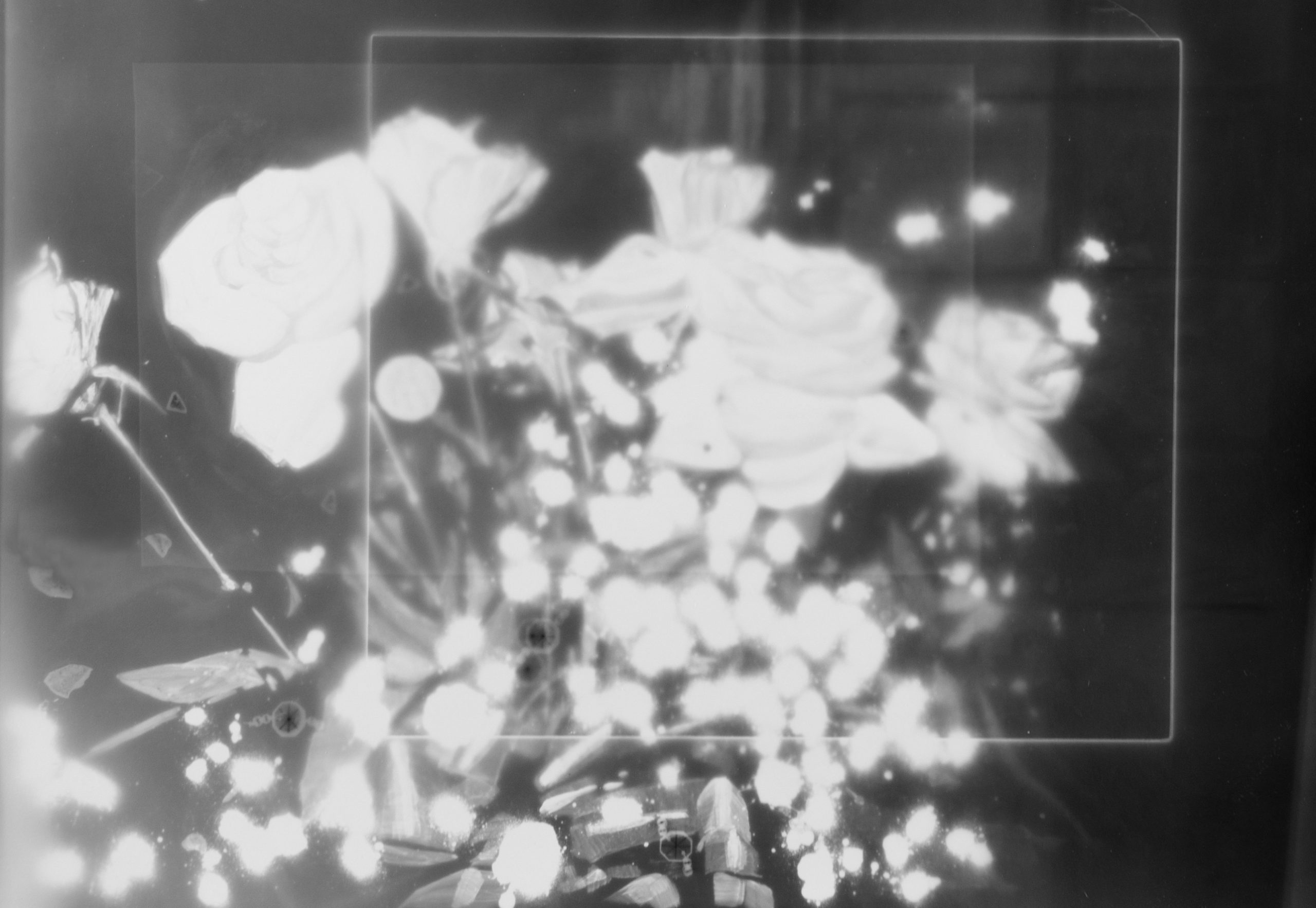 人々が共有してきた無数の像に触れる手段として、三宅が長年取り組んできた手法がフォトグラムです。その多くは、さまざまな経緯で出会った既存の画像をモチーフに、透明シートに複数のドローイングを描き、感光紙の上に重ね合わせて露光し、ドローイングの影を現像するというプロセスで制作されていきます。「影」というイメージの起源にまで遡って思考しつつ、画像の組成を裏側から探るような手法で生み出される作品群は、メディアのあいまいな広がりと、イメージの深層へといざなうような奥行きを有しています。また近年は、フォトグラムの制作を通して深めた思索を反映させた映像作品や、ファウンドオブジェを配置した作品にも取り組み、誰しもの眼差しに内在する「絵画的な像」を抽出するという彼女の試みは新たな表現の幅を広げ、私的でありながら同時に社会的でもあるわたしたちの存在を多声的に浮かび上がらせます。