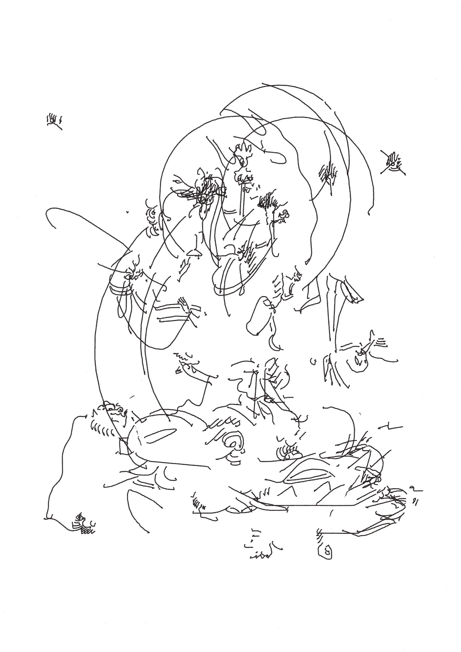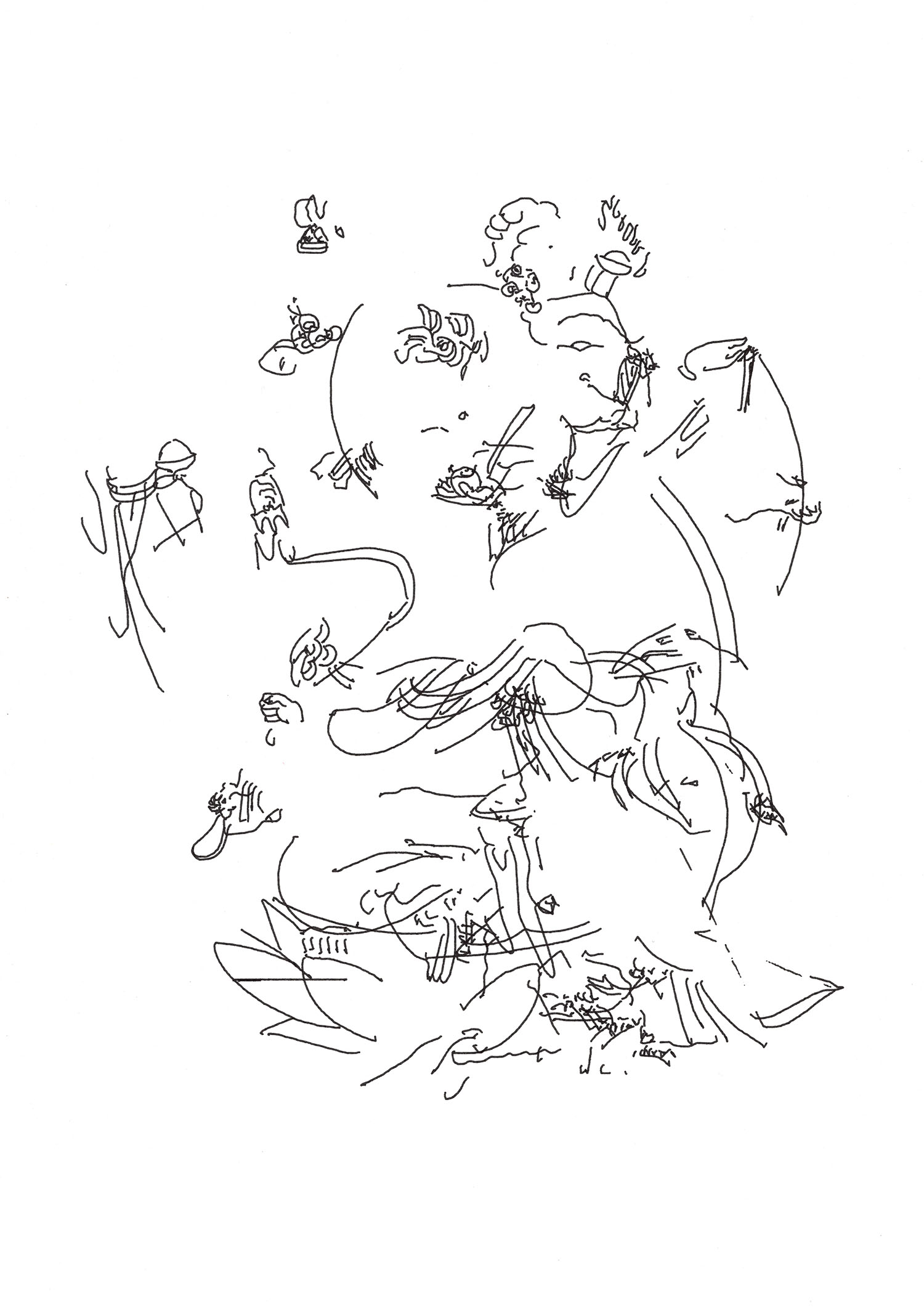 “Sketches for Invisible Knowledge No.6”, 2021, ink on paper, framed