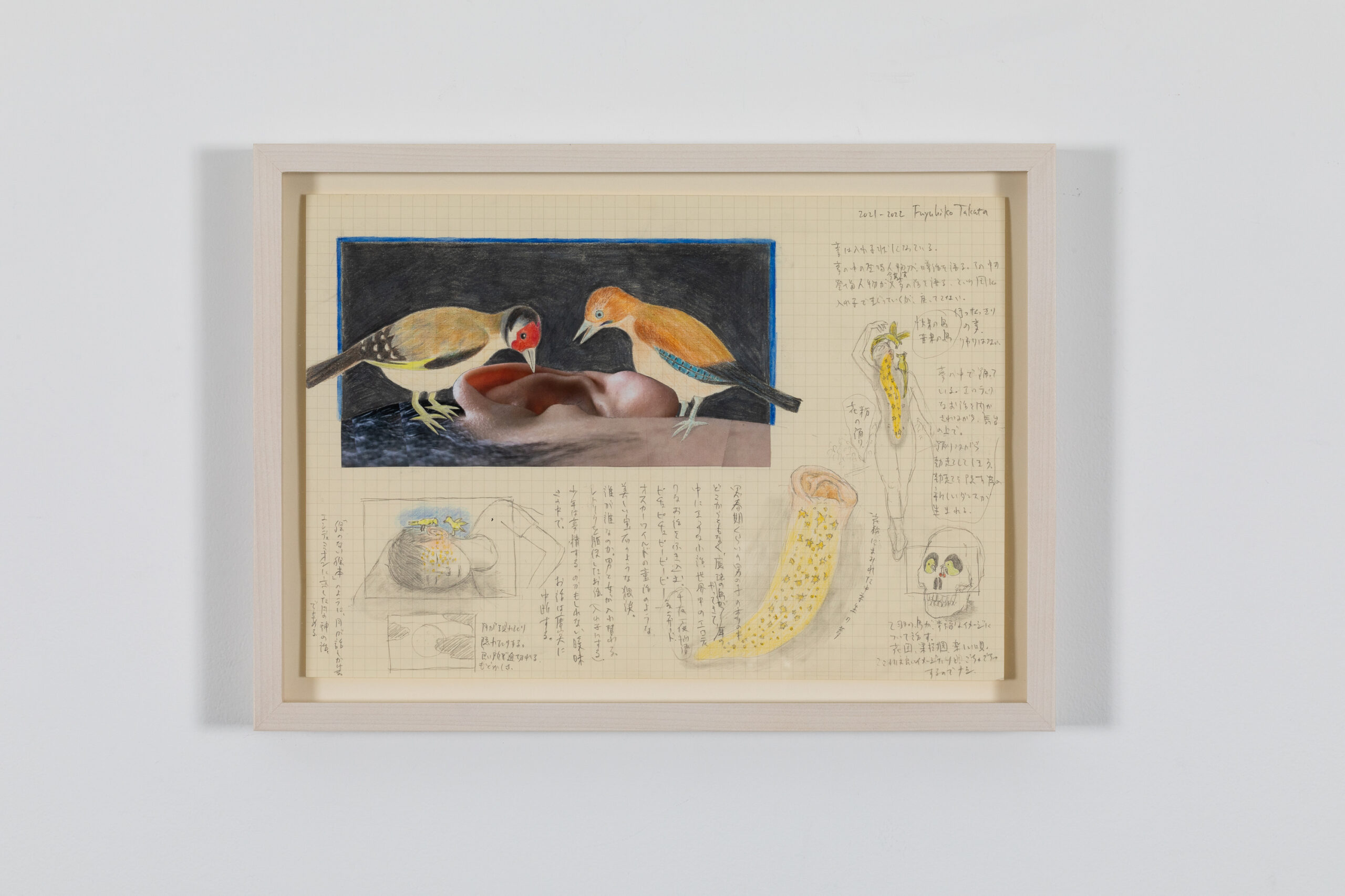 Pencil, color pencil, collage on paper, 9.6 x 13 x 1.2 inch