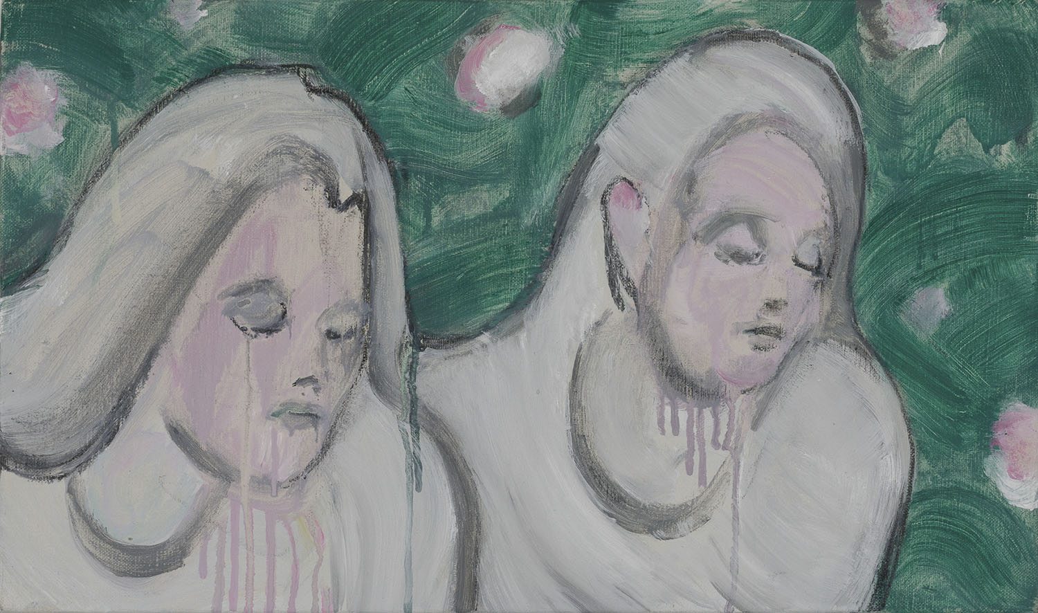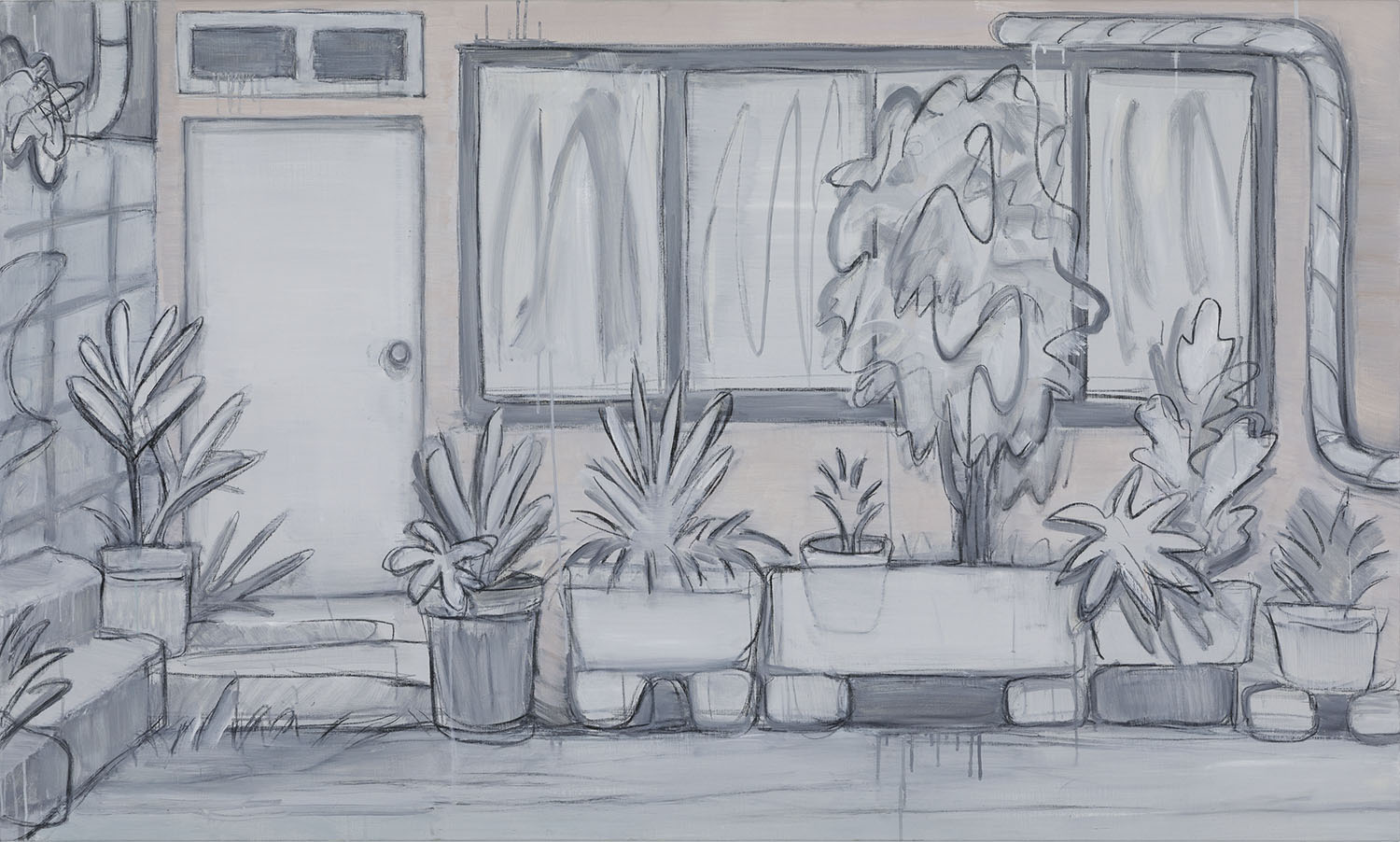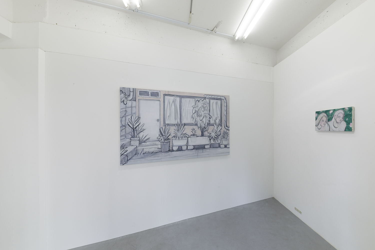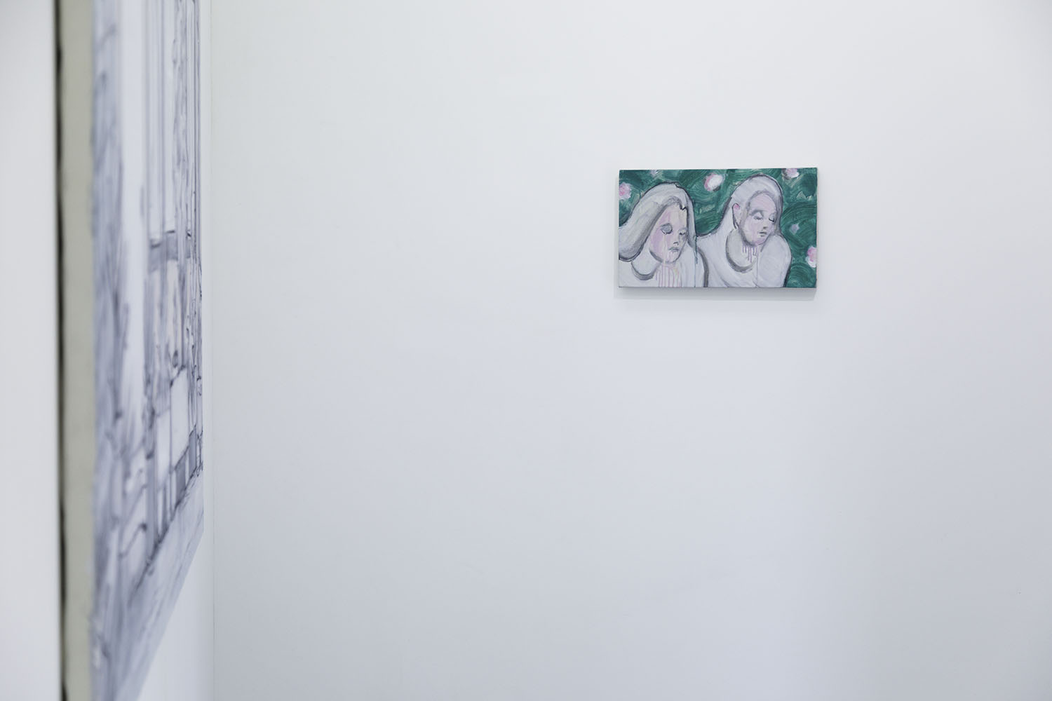 Right: “pink wall”, 2023, oil and charcoal on canvas, 1620 x 970 mm