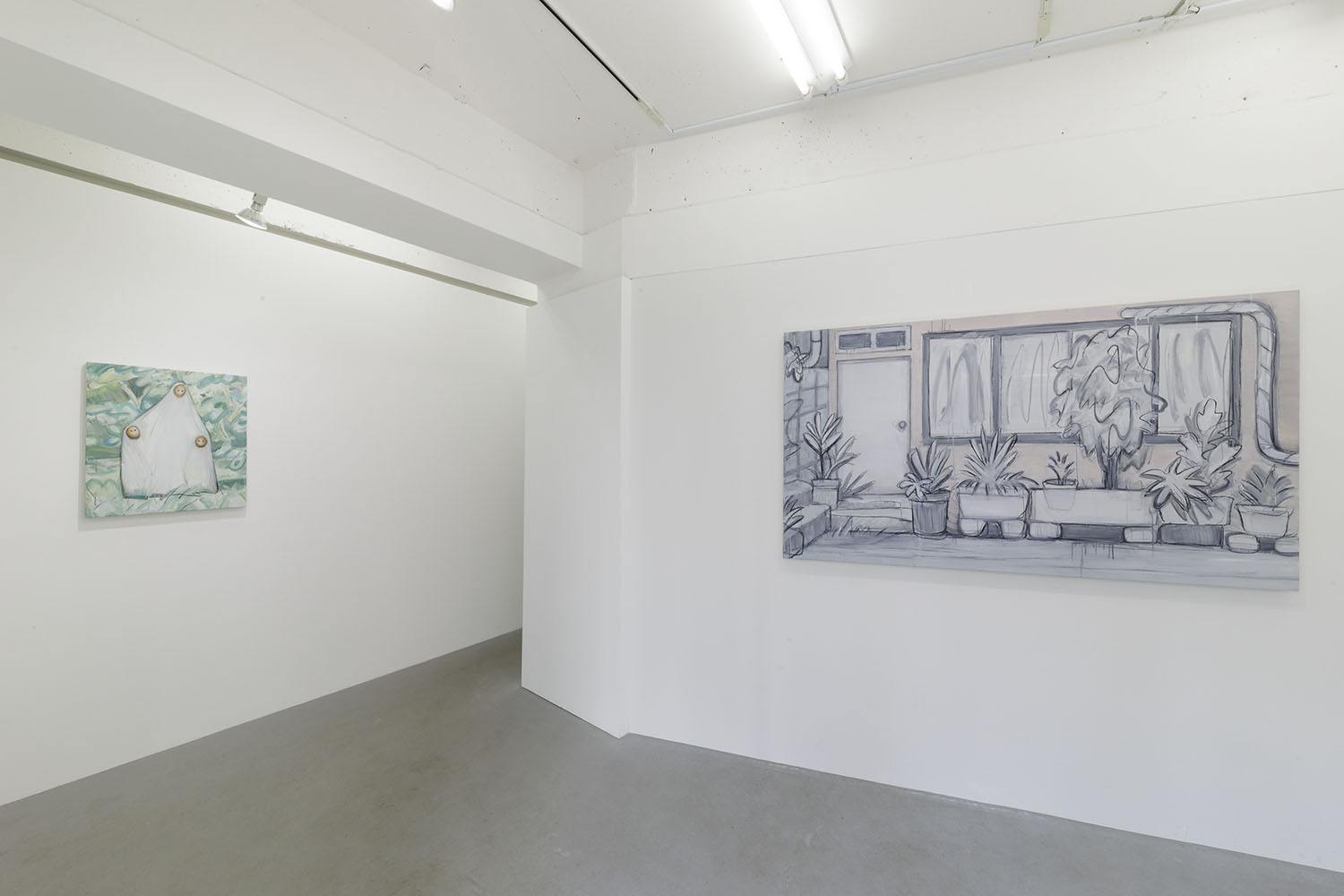 Left: ”home”, 2023, oil and charcoal on canvas, 652 x 500 mm