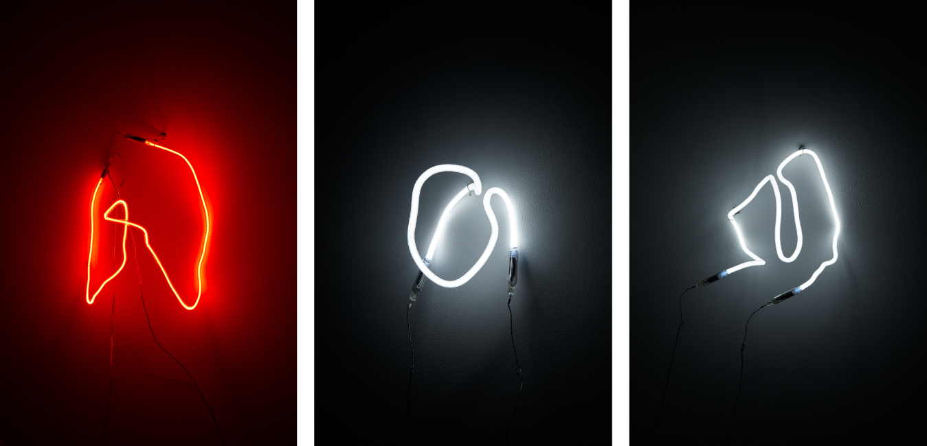left: “organ”, 2021, neon light, 340 x 270 x 240 mm