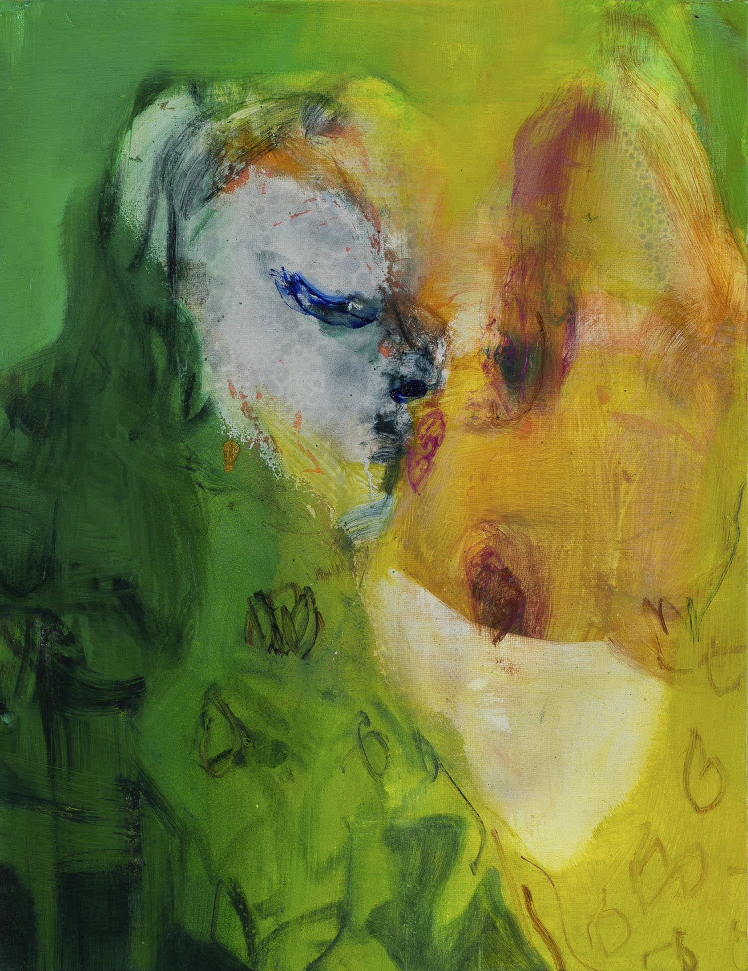 Right: “waiting / pointing”, 2023, acrylic and oil on canvas panel, H652 × W530 mm
