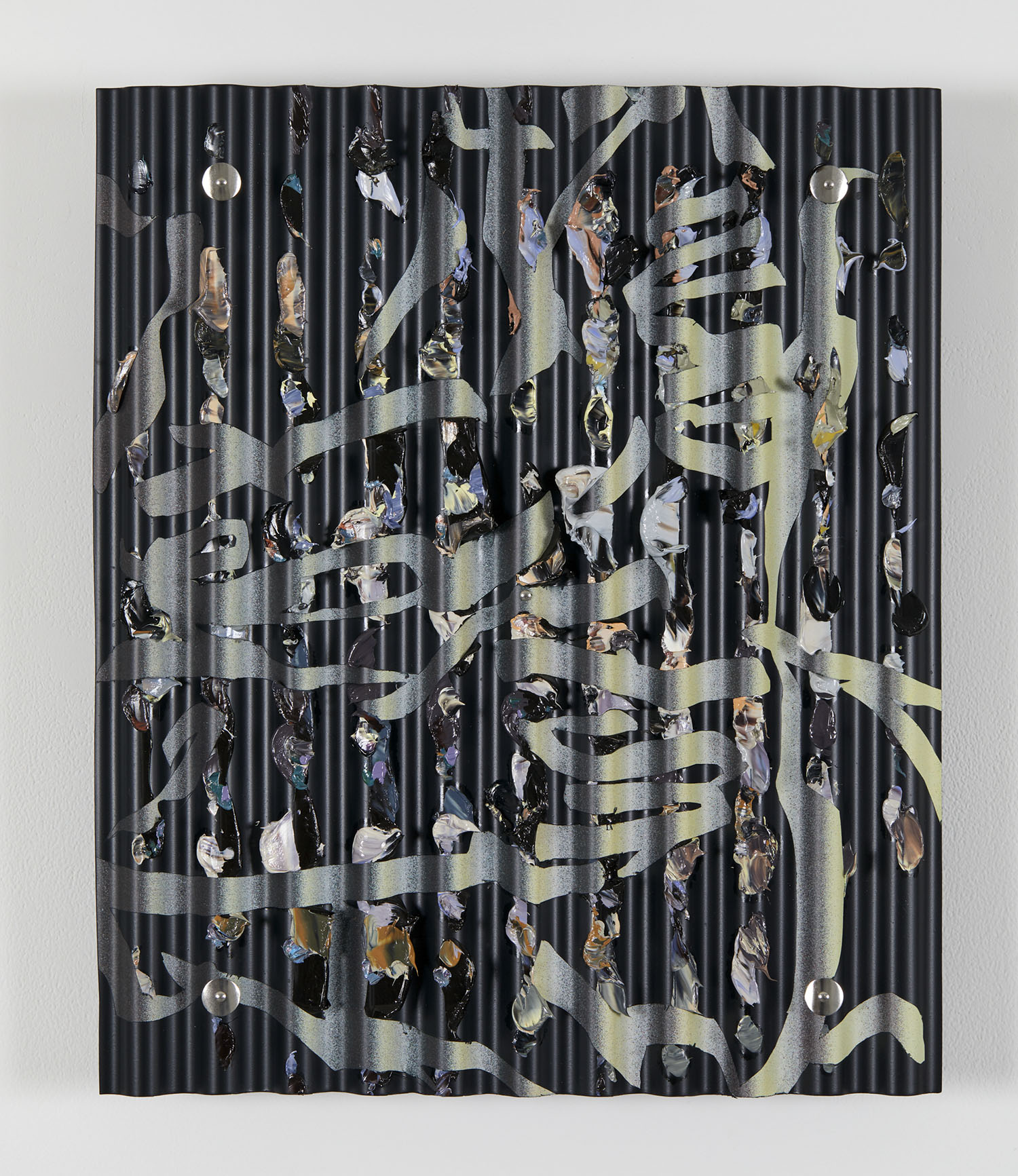 acrylic and oil on corrugated plastics sheeting, H425 x W355 mm photo by Keita Otsuka