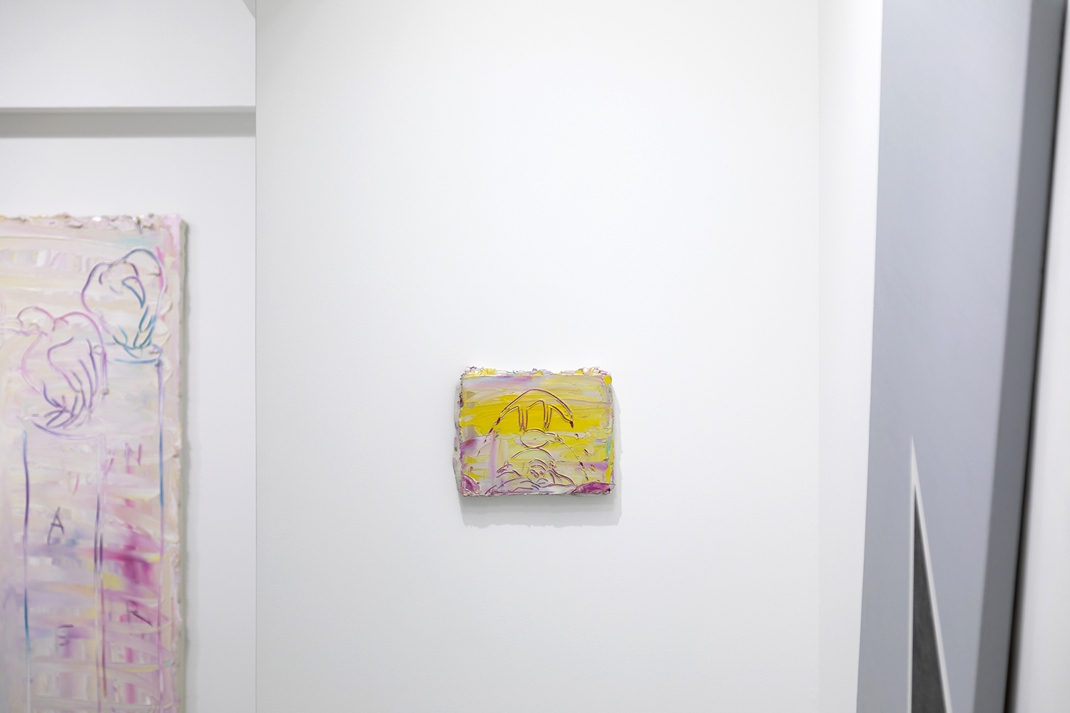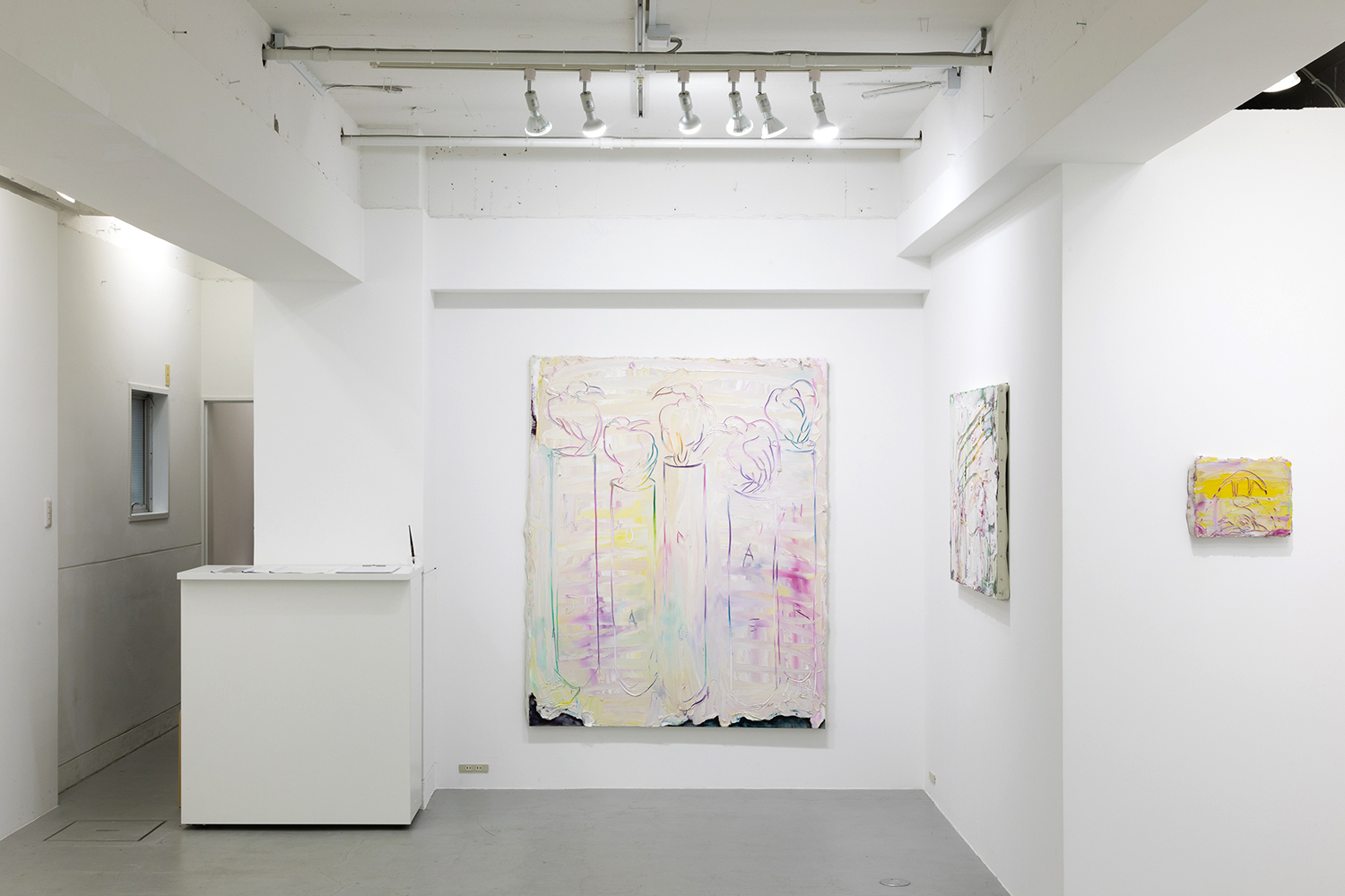 1992年福岡県生まれ、京都在住。2017年に京都造形芸術大学大学院・芸術専攻ペインティング領域を修了。輪郭線として表現される記号的なイメージと、物質感を伴うフェノメラルな像のうねりという、二つの分離した要素を共存させた絵画を制作しているアーティストです。近年の展覧会として、2020年個展『They』(WAITINGROOM/東京)、2019年グループ展『大鬼の住む島』(WAITIINGROOM/東京)、2018年個展『a doubtful reply』(WAITINGROOM/東京)、2017年グループ展『美大生展2017』(SEZON ART GALLERY/東京)、2016年グループ展『movement 2016 – 1st movement -』(ARTZONE/京都)、2015年『HERE I AM KUAD x TUNA交流展』(Na pai Art Gallery/台湾)などが挙げられます。2017年秋に参加した公募グループ展『第4回CAF賞入賞作品展』(代官山ヒルサイドフォーラム、東京)では白石正美賞を受賞し、その作品が大きく注目されました。