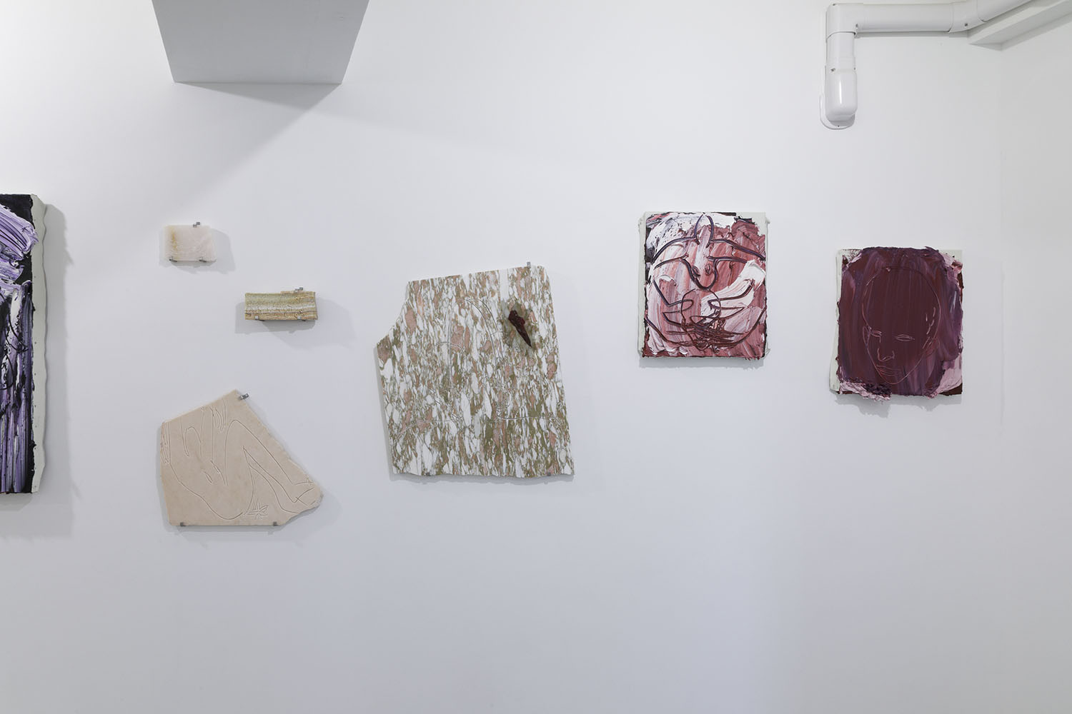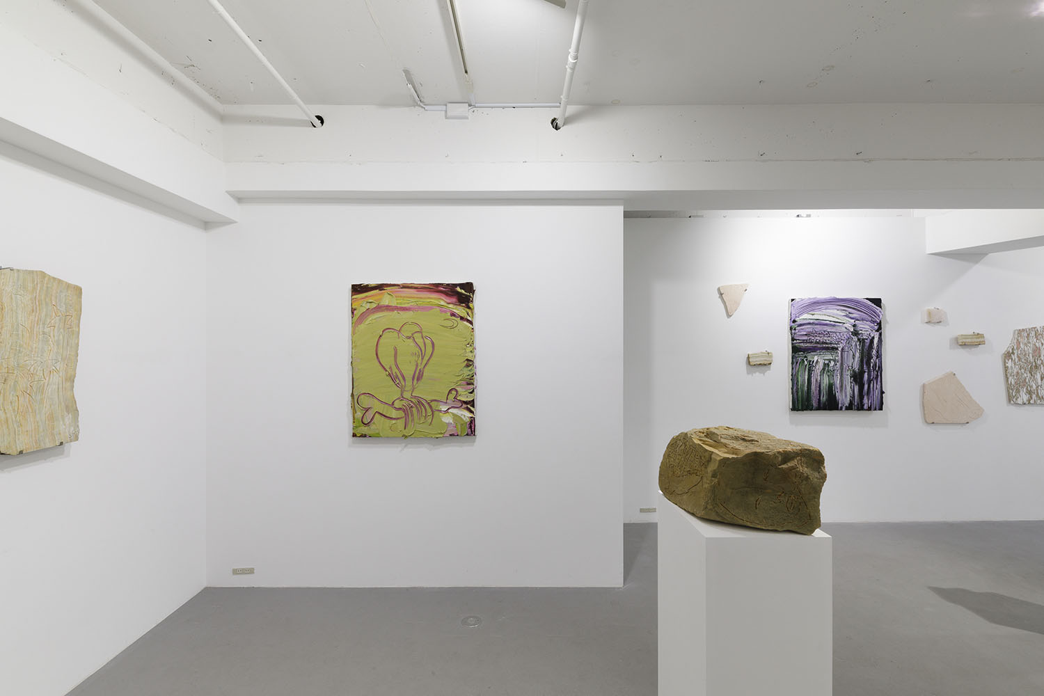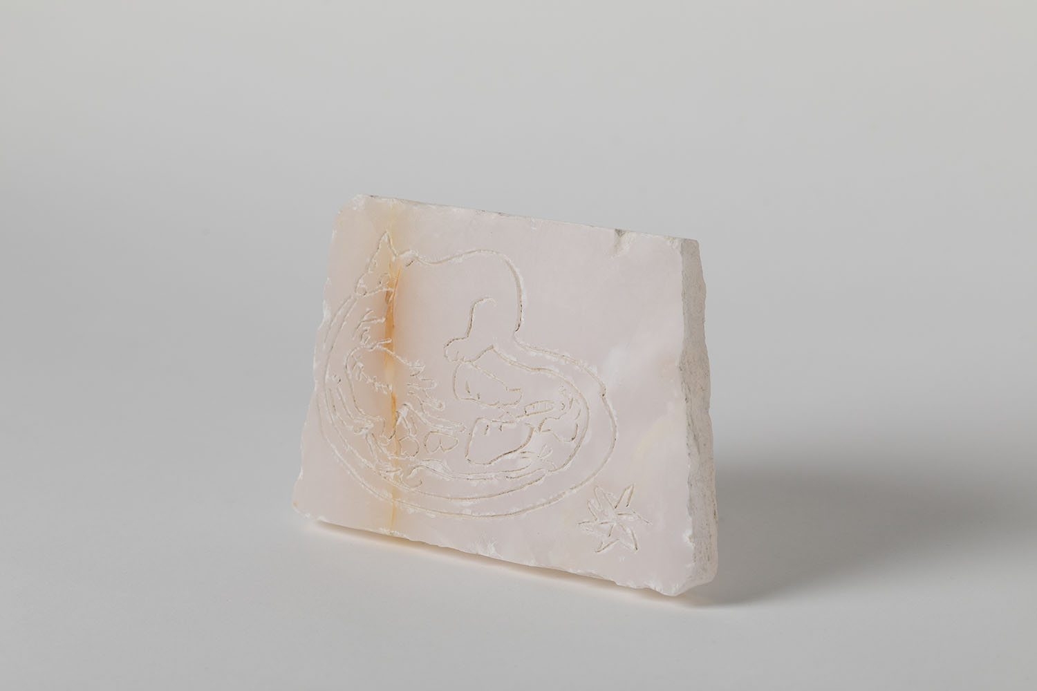 WAITINGROOM(東京)では、2023年11月25日(土)から12月24日(日)まで、川内理香子の個展『Even the pigments in paints were once stones』を開催いたします。「身体」という根源的なテーマを軸に、ペインティングやドローイング、針金やネオン管など、多岐にわたる素材を用いて作品を制作している川内理香子。近年は、消化や排泄、料理をテーマとした各地の神話の中に象徴的に登場する、動物や人体の一部などのモチーフを、色彩豊かに描いたペインティング作品でも知られています。 本展で川内は、大理石をはじめとした石を素材にした新シリーズを、新作のペインティング作品と共に発表いたします。川内作品の特徴は、どの表現方法においても、作家自身の身体をもって表現される「線」にあると言えます。油絵の具によるペインティング作品も、輪郭で囲まれた対象の内側を塗り分けるのではなく、何層にも厚塗りした色彩の面を、引っ掻くような素早い筆致で線描するという手法で描かれています。石の彫刻の新シリーズでは、ペインティング作品の手法を引き継ぎ、特徴的な線描によるドローイングを、大理石のもつ天然の色彩や模様の上に彫り込みました。新たな素材と出会った川内理香子の新シリーズにぜひご期待ください。 左:《A Day in the Life》2023, stone, 450 x 710 x 50 mm 右:《pretzel》2023, stone, 220 x 220 x 70 mm photo by Shintaro Yamanaka (Qsyum!)(左右とも)