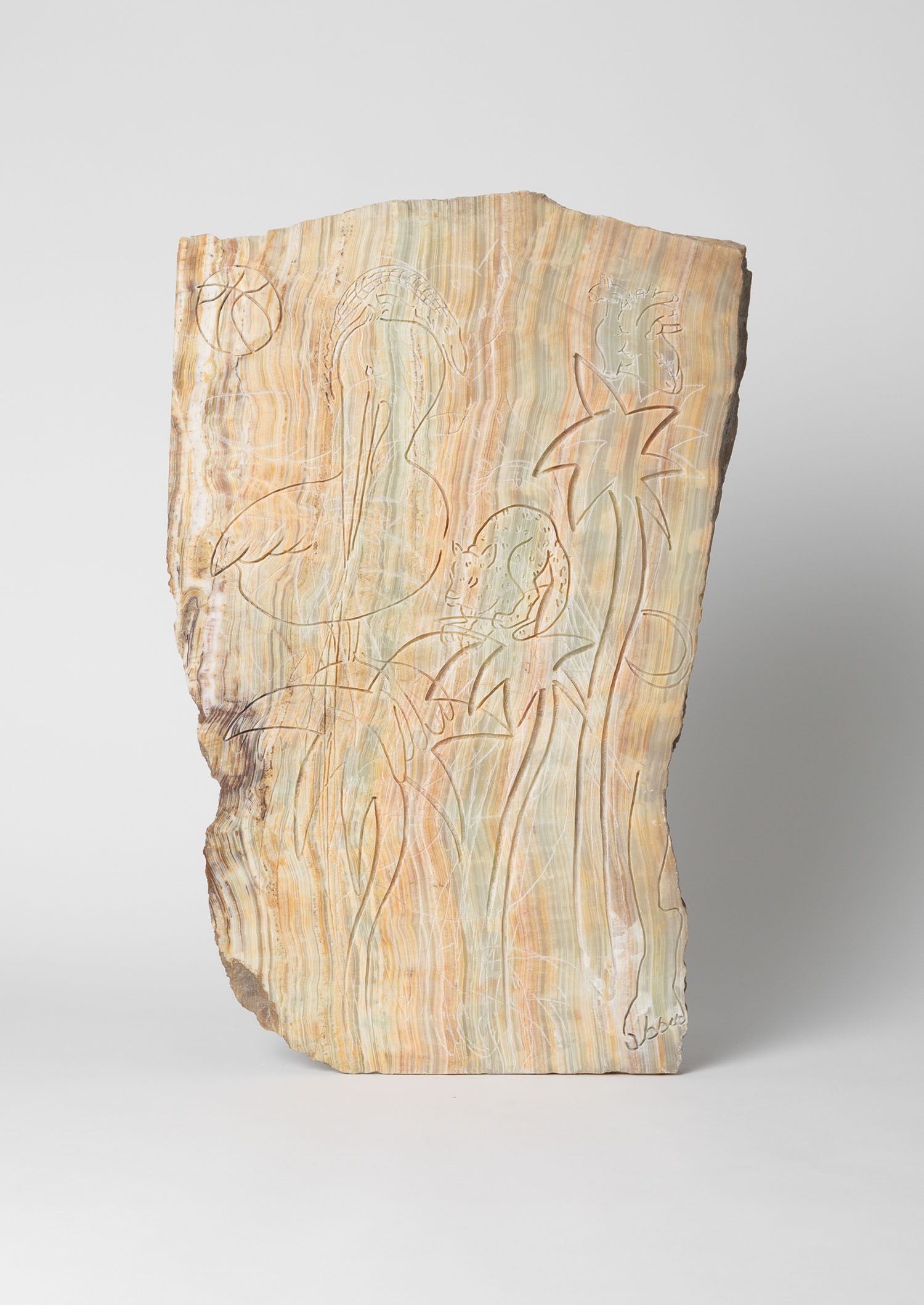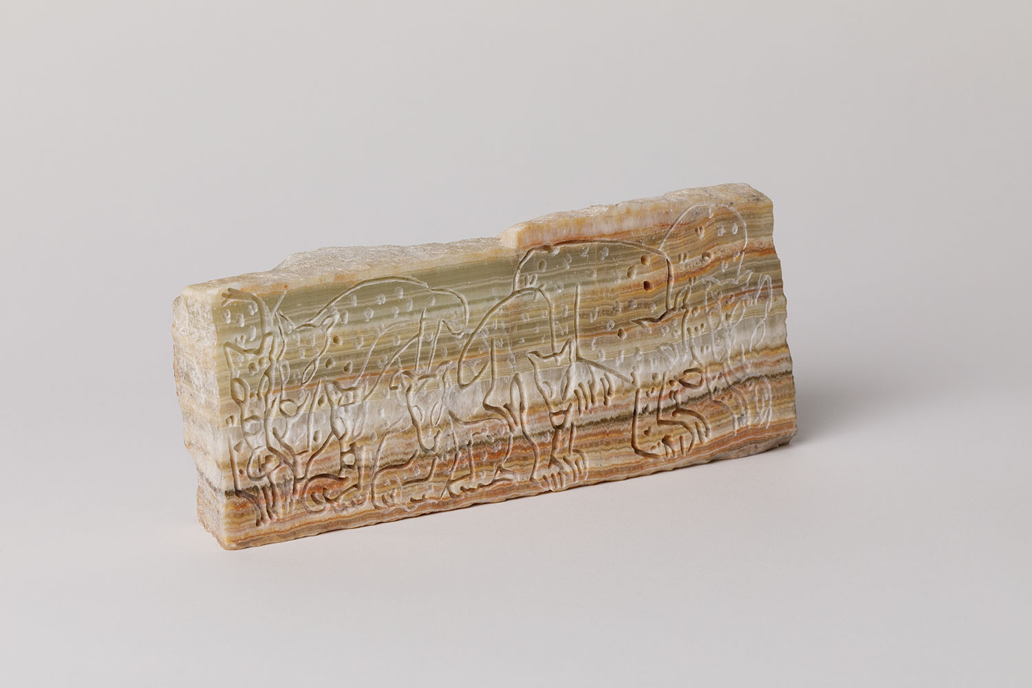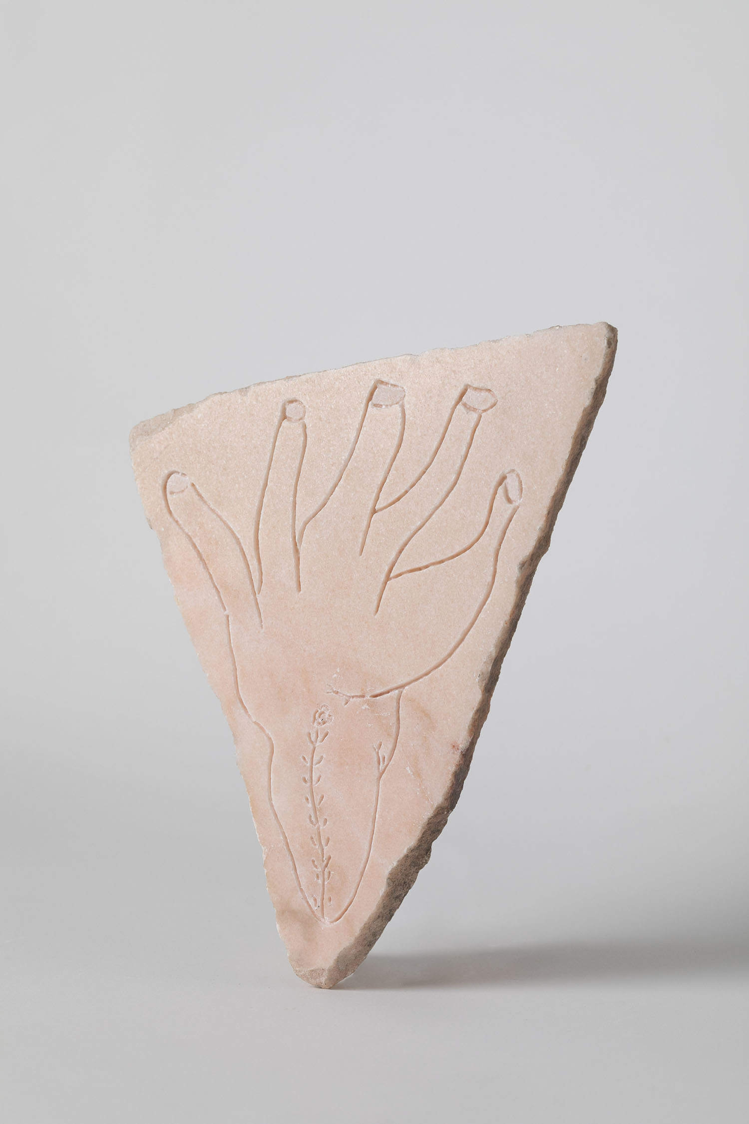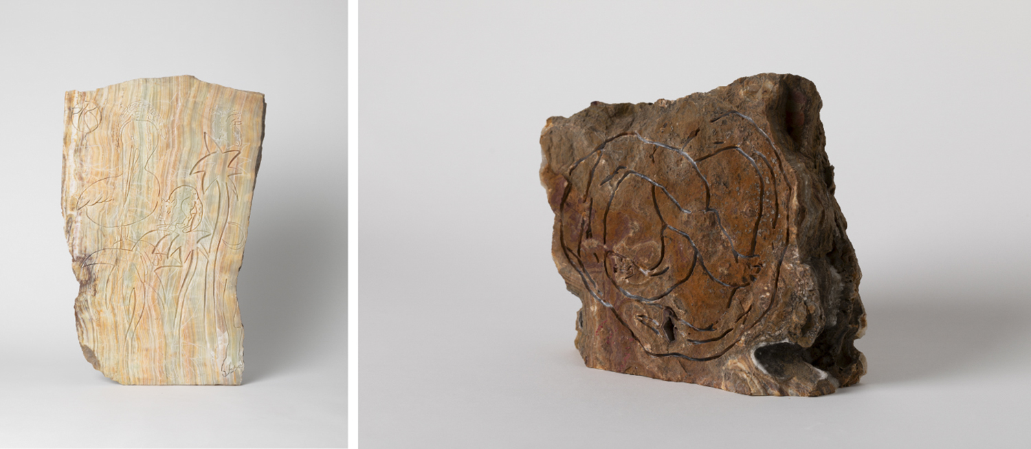 WAITINGROOM(東京)では、2023年11月25日(土)から12月24日(日)まで、川内理香子の個展『Even the pigments in paints were once stones』を開催いたします。「身体」という根源的なテーマを軸に、ペインティングやドローイング、針金やネオン管など、多岐にわたる素材を用いて作品を制作している川内理香子。近年は、消化や排泄、料理をテーマとした各地の神話の中に象徴的に登場する、動物や人体の一部などのモチーフを、色彩豊かに描いたペインティング作品でも知られています。 本展で川内は、大理石をはじめとした石を素材にした新シリーズを、新作のペインティング作品と共に発表いたします。川内作品の特徴は、どの表現方法においても、作家自身の身体をもって表現される「線」にあると言えます。油絵の具によるペインティング作品も、輪郭で囲まれた対象の内側を塗り分けるのではなく、何層にも厚塗りした色彩の面を、引っ掻くような素早い筆致で線描するという手法で描かれています。石の彫刻の新シリーズでは、ペインティング作品の手法を引き継ぎ、特徴的な線描によるドローイングを、大理石のもつ天然の色彩や模様の上に彫り込みました。新たな素材と出会った川内理香子の新シリーズにぜひご期待ください。 左:《A Day in the Life》2023, stone, 450 x 710 x 50 mm 右:《pretzel》2023, stone, 220 x 220 x 70 mm photo by Shintaro Yamanaka (Qsyum!)(左右とも)