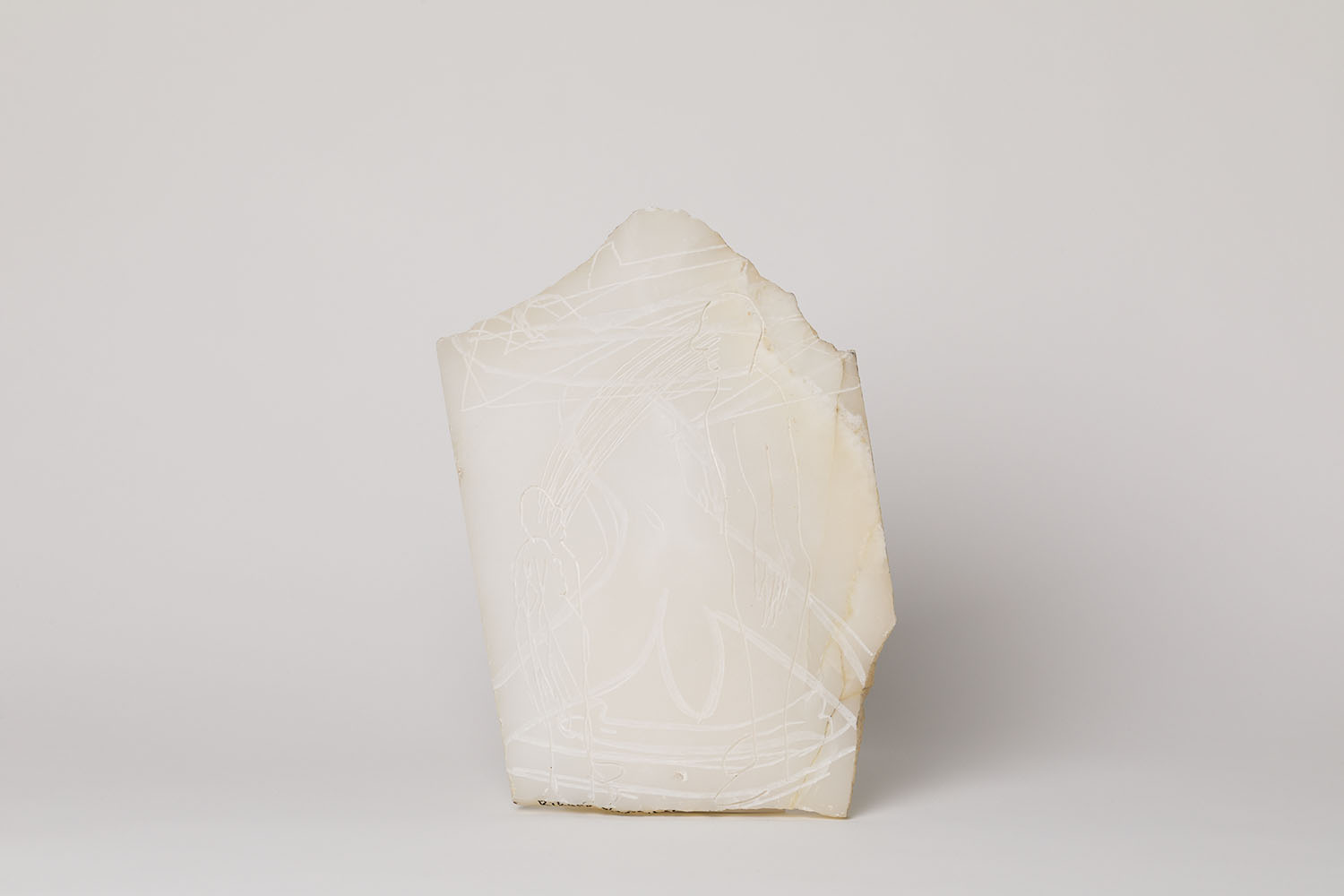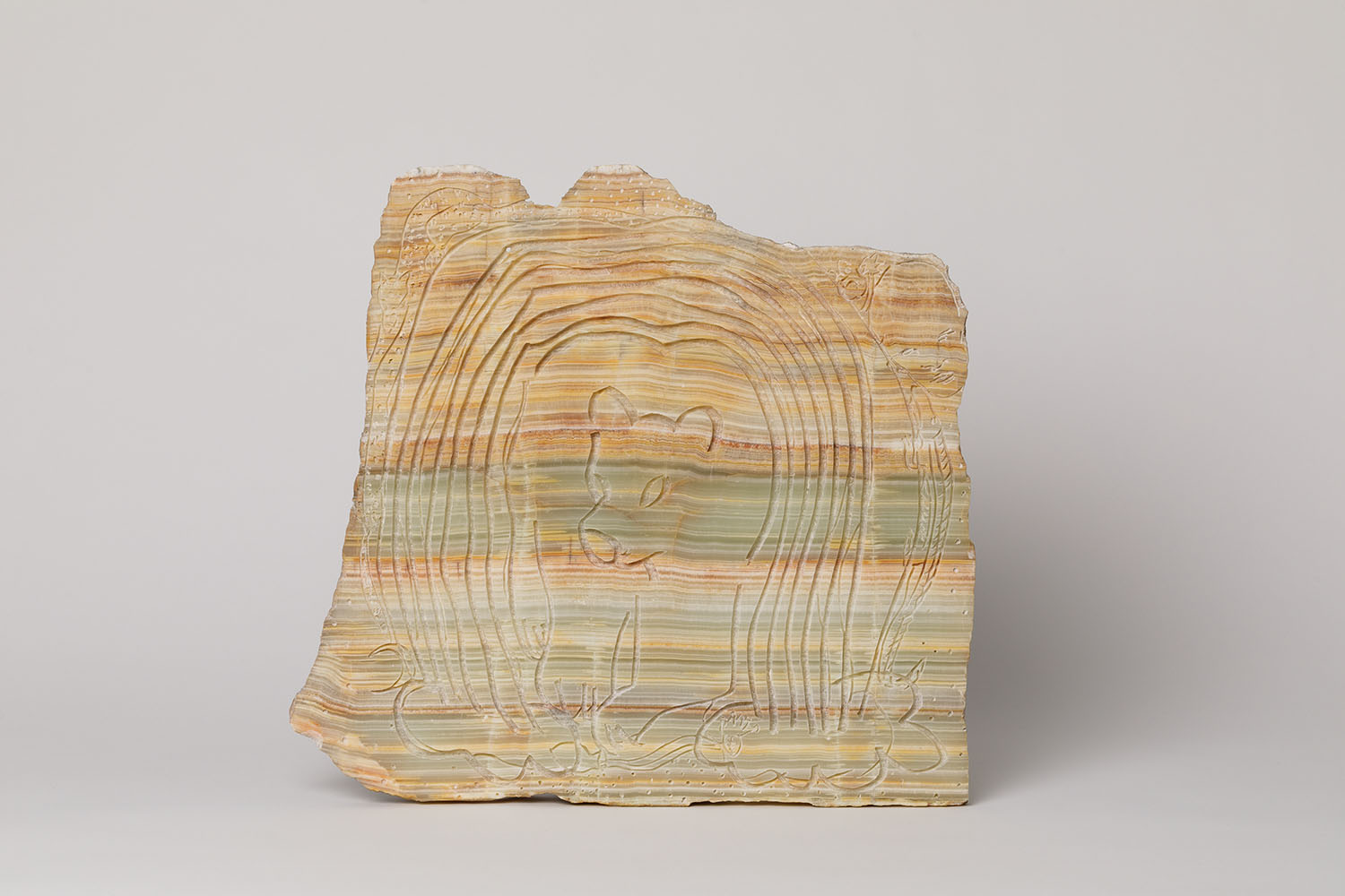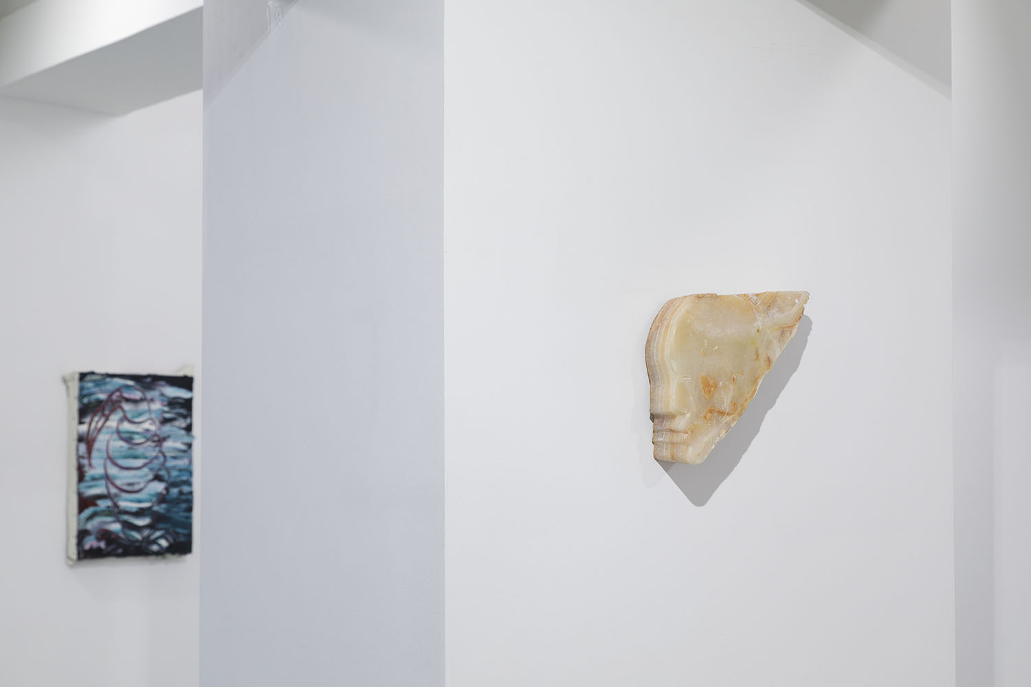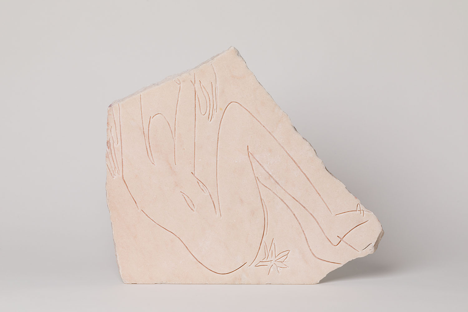 ドローイングだけで構成された展覧会で鮮烈なインパクトを残し、そのキャリアをスタートさせた川内理香子は、「線」とは、それを引いた者の身体性が最も如実に表れるものだといいます。「線には、その瞬間の身体の動きが、ひいては精神性までが表れるものだと思っています。自分の思考や身体は、日々刻々と状況の中で変化する流動的なものですが、私は線を引くことで、その瞬間の身体を作品の上に『凝固』させているという感覚があります」(松崎未来「30 ARTISTS U35 川内理香子 Rikako Kawauchi」、ARTnews JAPAN、2022年2月4日、https://artnewsjapan.com/30artists_u35/article/13)と語っているように、川内はその制作を通し、内部と外部、意識と無意識といった、捉え難い何かの境界や輪郭を探るように「線」を引きながら、それらをキャンバスや画用紙の上に留めようとしています。 本展で発表される新シリーズに用いられている大理石は、熱や大きな圧力が加わりながら、長い時間をかけて石灰岩が再結晶化したものです。その組成物であるサンゴなどの死骸は本来は白く、数万~数億年かけて石として生成する過程で、化学反応や熱による影響、石に含まれる鉱物や金属イオンなどの違いにより、様々な色や模様の違いが生まれます。大理石の表面に表れた天然の色や模様は、何万年という時間をかけて『凝固』してできたものなのです。 川内のペインティング作品の表面を見ると、厚塗りされた柔らかい油絵の具が乾いて固まる前に、その表面を削るように「線」を引き対象が描写されているということがわかります。川内の言う、流動している不確定なものが『凝固』して作品になるという感覚は、かかる時間の差異はあれど、石の成り立ちと似ていると言えるでしょう。そんな石の上に刻み込まれた川内の「線」は、ごつごつとした岩肌に「線」によって描かれた、芸術の始まりとも形容されるラスコーの洞窟壁画を彷彿とさせるかのようです。それらは共に発表されるペインティング作品と響き合い、「線を引く」という表現のもつ身体性や、プリミティブで本能的な側面を思い出させるでしょう。