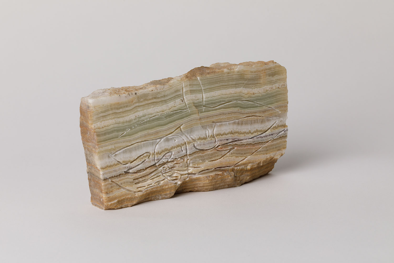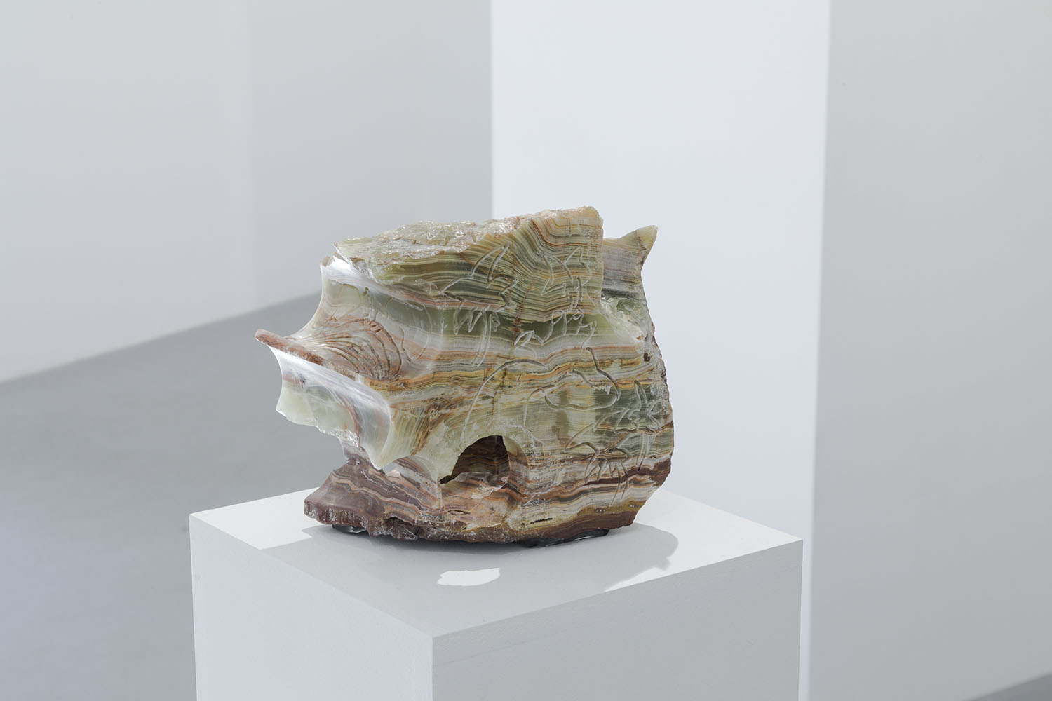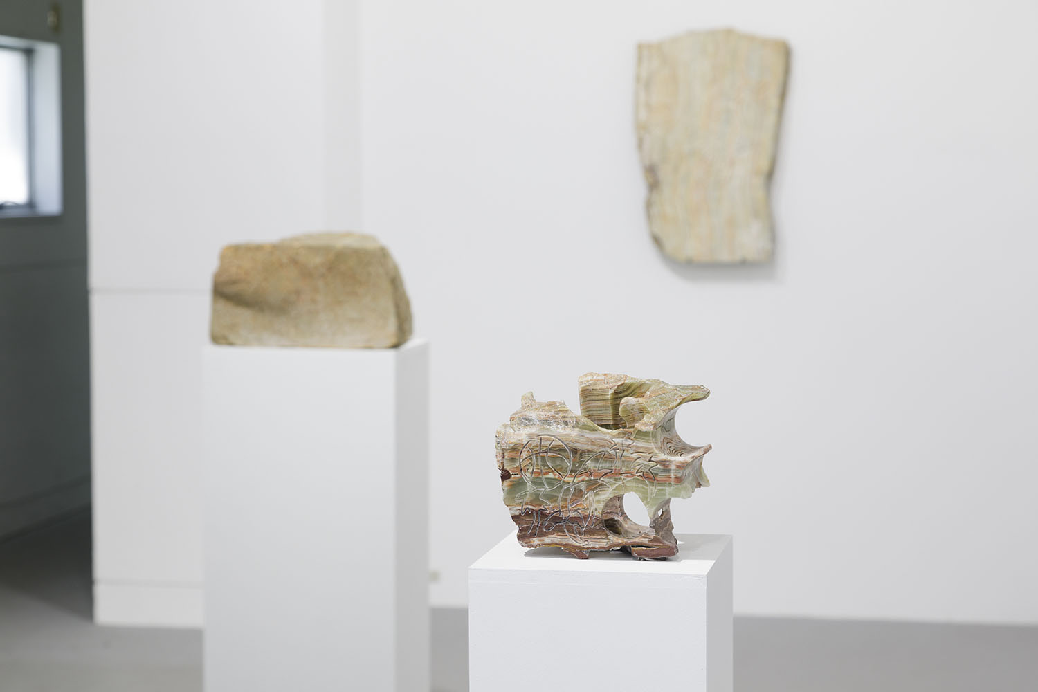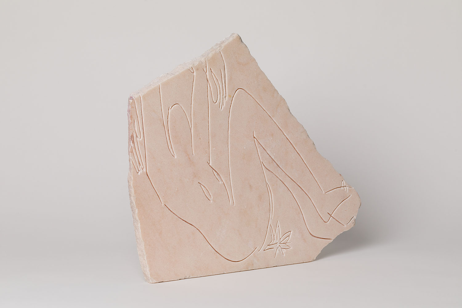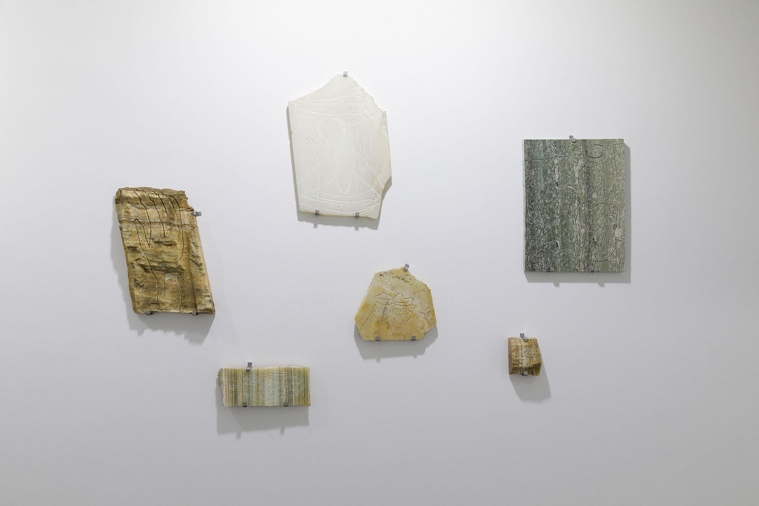 ドローイングだけで構成された展覧会で鮮烈なインパクトを残し、そのキャリアをスタートさせた川内理香子は、「線」とは、それを引いた者の身体性が最も如実に表れるものだといいます。「線には、その瞬間の身体の動きが、ひいては精神性までが表れるものだと思っています。自分の思考や身体は、日々刻々と状況の中で変化する流動的なものですが、私は線を引くことで、その瞬間の身体を作品の上に『凝固』させているという感覚があります」(松崎未来「30 ARTISTS U35 川内理香子 Rikako Kawauchi」、ARTnews JAPAN、2022年2月4日、https://artnewsjapan.com/30artists_u35/article/13)と語っているように、川内はその制作を通し、内部と外部、意識と無意識といった、捉え難い何かの境界や輪郭を探るように「線」を引きながら、それらをキャンバスや画用紙の上に留めようとしています。 本展で発表される新シリーズに用いられている大理石は、熱や大きな圧力が加わりながら、長い時間をかけて石灰岩が再結晶化したものです。その組成物であるサンゴなどの死骸は本来は白く、数万~数億年かけて石として生成する過程で、化学反応や熱による影響、石に含まれる鉱物や金属イオンなどの違いにより、様々な色や模様の違いが生まれます。大理石の表面に表れた天然の色や模様は、何万年という時間をかけて『凝固』してできたものなのです。 川内のペインティング作品の表面を見ると、厚塗りされた柔らかい油絵の具が乾いて固まる前に、その表面を削るように「線」を引き対象が描写されているということがわかります。川内の言う、流動している不確定なものが『凝固』して作品になるという感覚は、かかる時間の差異はあれど、石の成り立ちと似ていると言えるでしょう。そんな石の上に刻み込まれた川内の「線」は、ごつごつとした岩肌に「線」によって描かれた、芸術の始まりとも形容されるラスコーの洞窟壁画を彷彿とさせるかのようです。それらは共に発表されるペインティング作品と響き合い、「線を引く」という表現のもつ身体性や、プリミティブで本能的な側面を思い出させるでしょう。