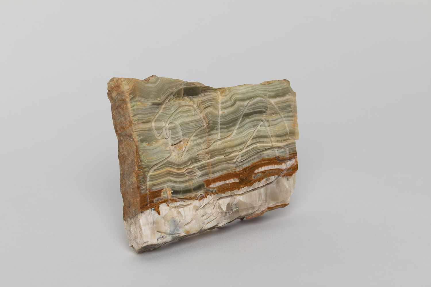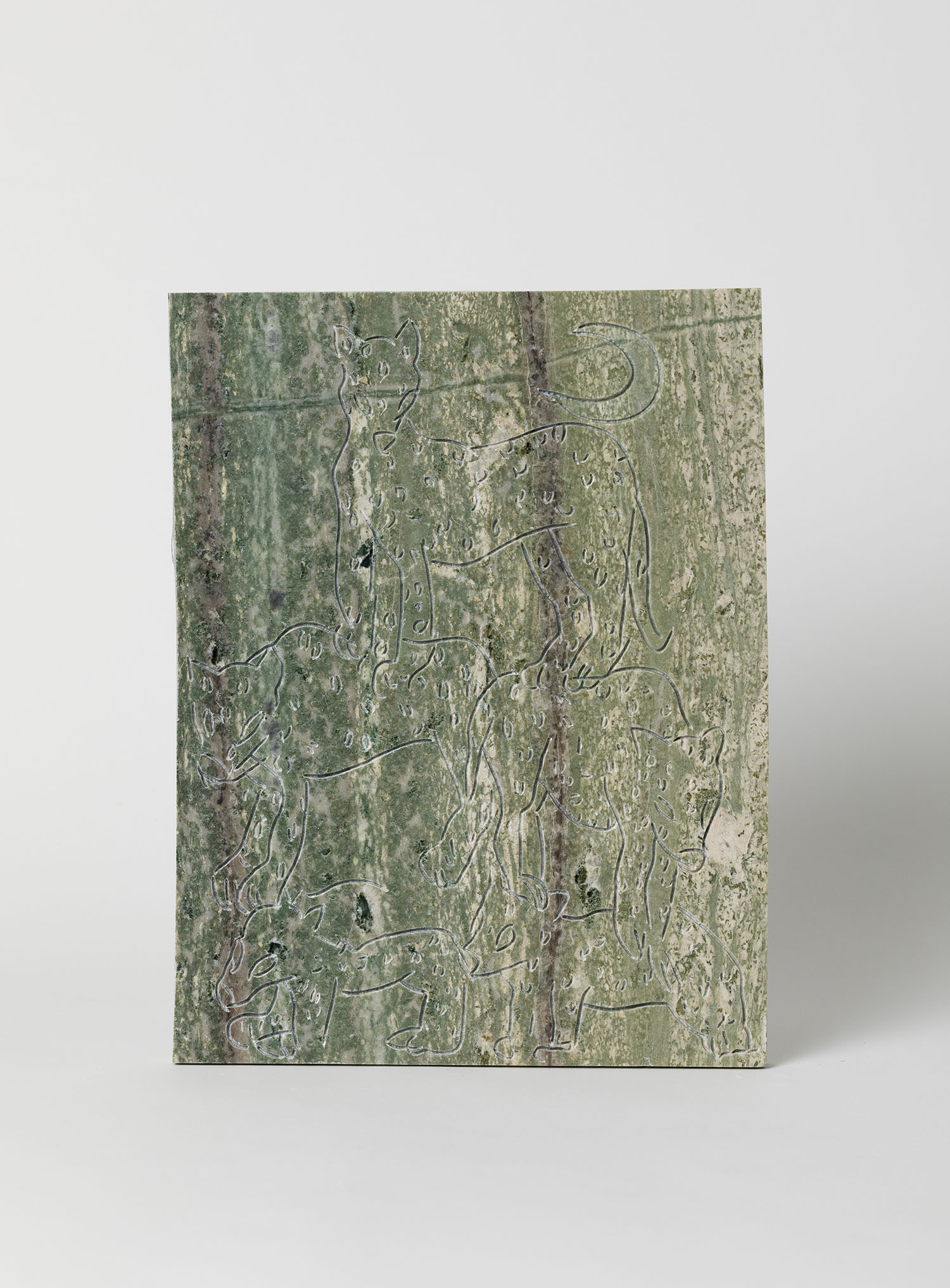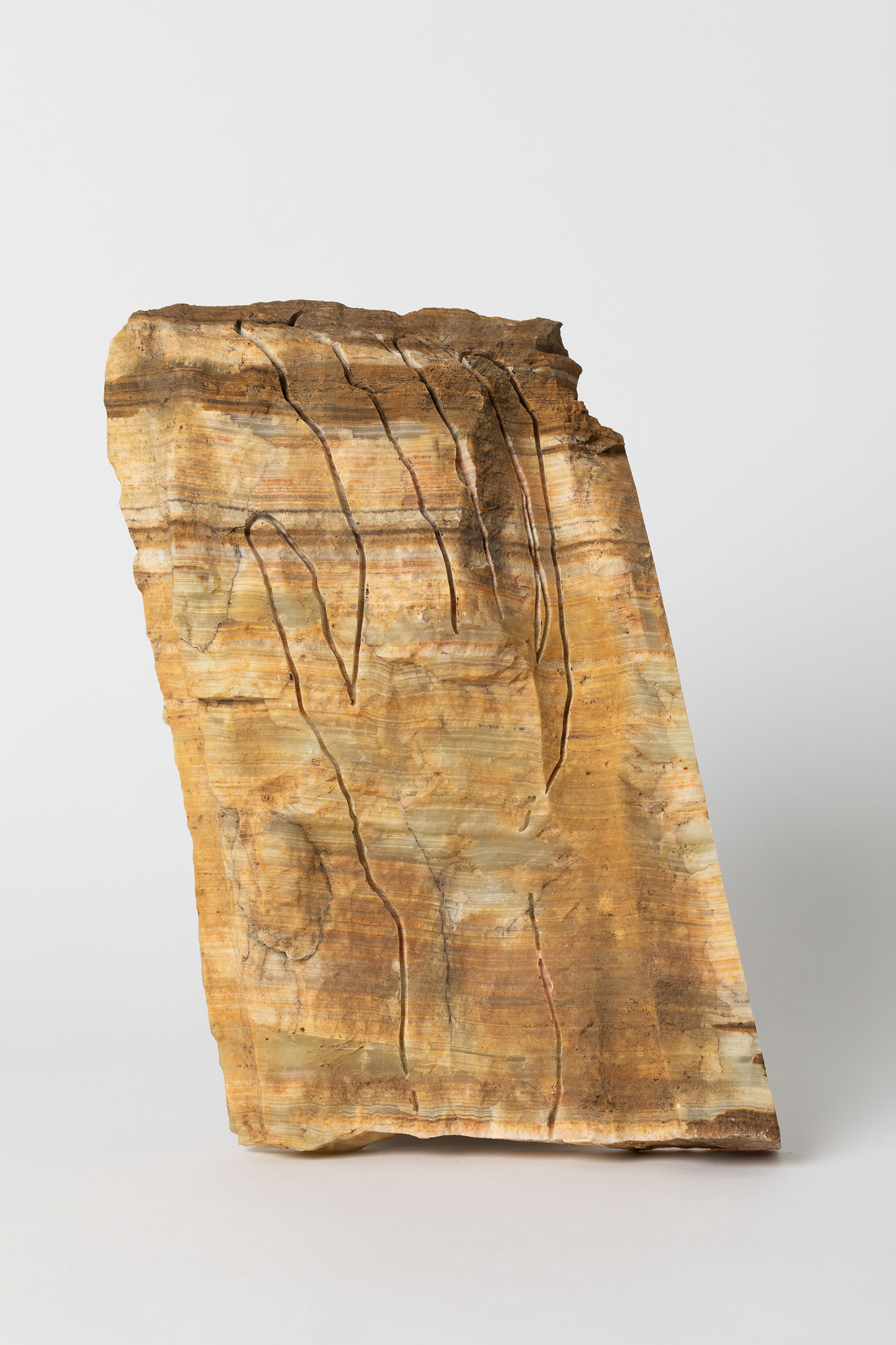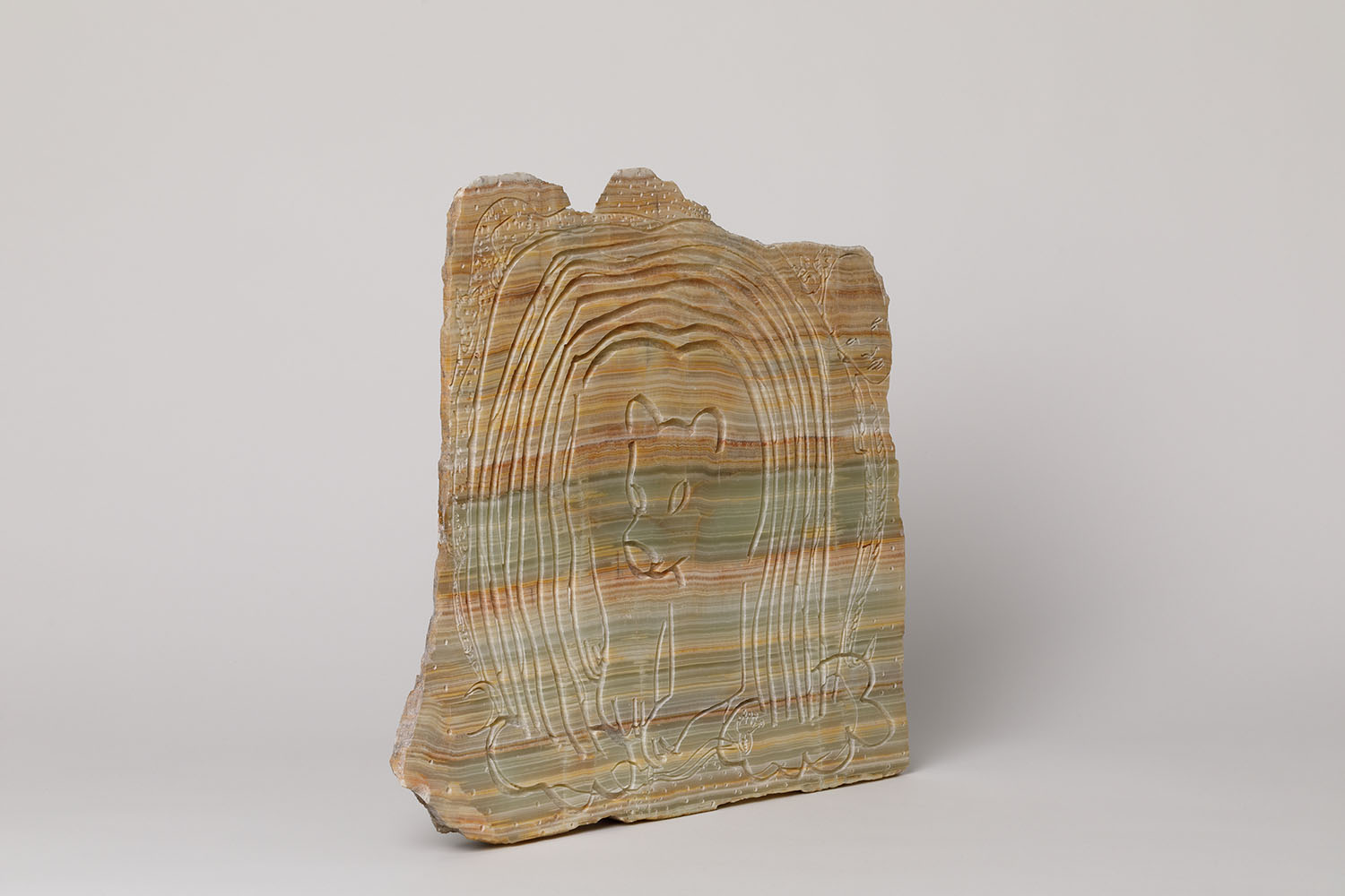 ドローイングだけで構成された展覧会で鮮烈なインパクトを残し、そのキャリアをスタートさせた川内理香子は、「線」とは、それを引いた者の身体性が最も如実に表れるものだといいます。「線には、その瞬間の身体の動きが、ひいては精神性までが表れるものだと思っています。自分の思考や身体は、日々刻々と状況の中で変化する流動的なものですが、私は線を引くことで、その瞬間の身体を作品の上に『凝固』させているという感覚があります」(松崎未来「30 ARTISTS U35 川内理香子 Rikako Kawauchi」、ARTnews JAPAN、2022年2月4日、https://artnewsjapan.com/30artists_u35/article/13)と語っているように、川内はその制作を通し、内部と外部、意識と無意識といった、捉え難い何かの境界や輪郭を探るように「線」を引きながら、それらをキャンバスや画用紙の上に留めようとしています。 本展で発表される新シリーズに用いられている大理石は、熱や大きな圧力が加わりながら、長い時間をかけて石灰岩が再結晶化したものです。その組成物であるサンゴなどの死骸は本来は白く、数万~数億年かけて石として生成する過程で、化学反応や熱による影響、石に含まれる鉱物や金属イオンなどの違いにより、様々な色や模様の違いが生まれます。大理石の表面に表れた天然の色や模様は、何万年という時間をかけて『凝固』してできたものなのです。 川内のペインティング作品の表面を見ると、厚塗りされた柔らかい油絵の具が乾いて固まる前に、その表面を削るように「線」を引き対象が描写されているということがわかります。川内の言う、流動している不確定なものが『凝固』して作品になるという感覚は、かかる時間の差異はあれど、石の成り立ちと似ていると言えるでしょう。そんな石の上に刻み込まれた川内の「線」は、ごつごつとした岩肌に「線」によって描かれた、芸術の始まりとも形容されるラスコーの洞窟壁画を彷彿とさせるかのようです。それらは共に発表されるペインティング作品と響き合い、「線を引く」という表現のもつ身体性や、プリミティブで本能的な側面を思い出させるでしょう。
