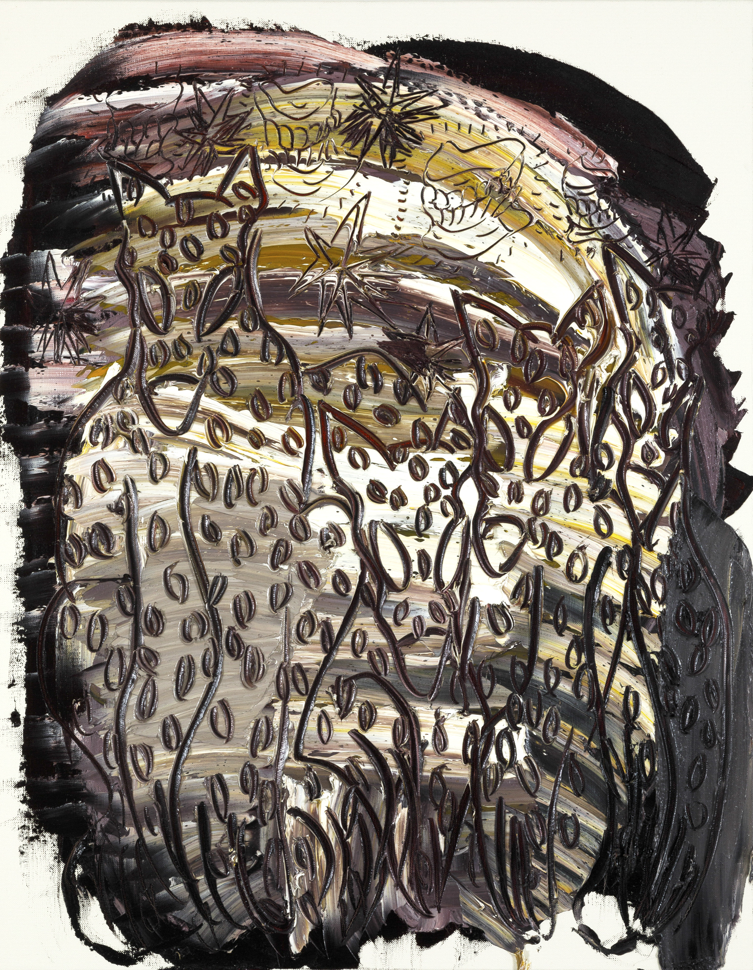 あるところで絵の中の流動は私の中で石のようにかたくななものに感じられ画面が結晶化する。