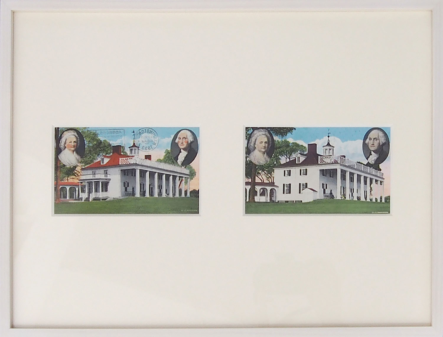 1930-50年代のポストカード2枚, 額縁, 360 x 400 mm