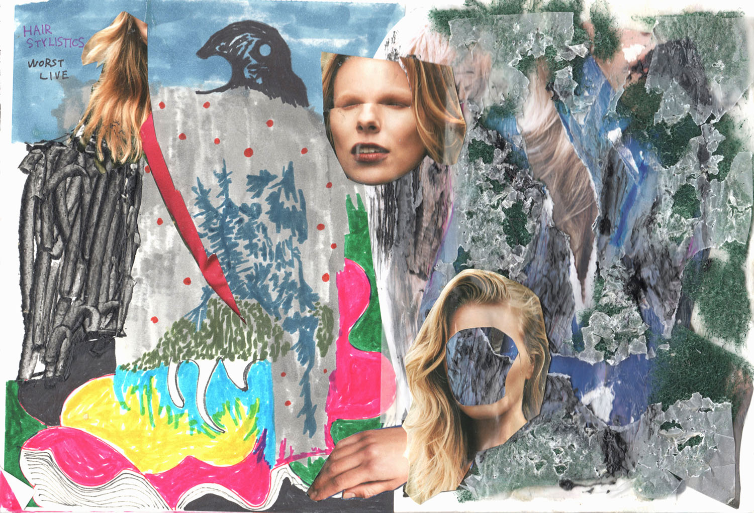 木, アクリル絵具, キャンバス, 紙, 600 x 420 mm