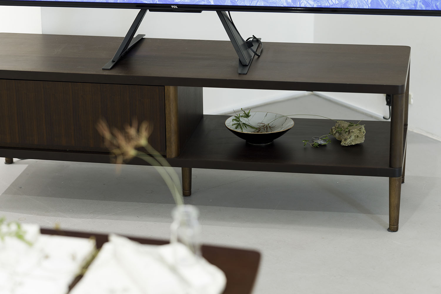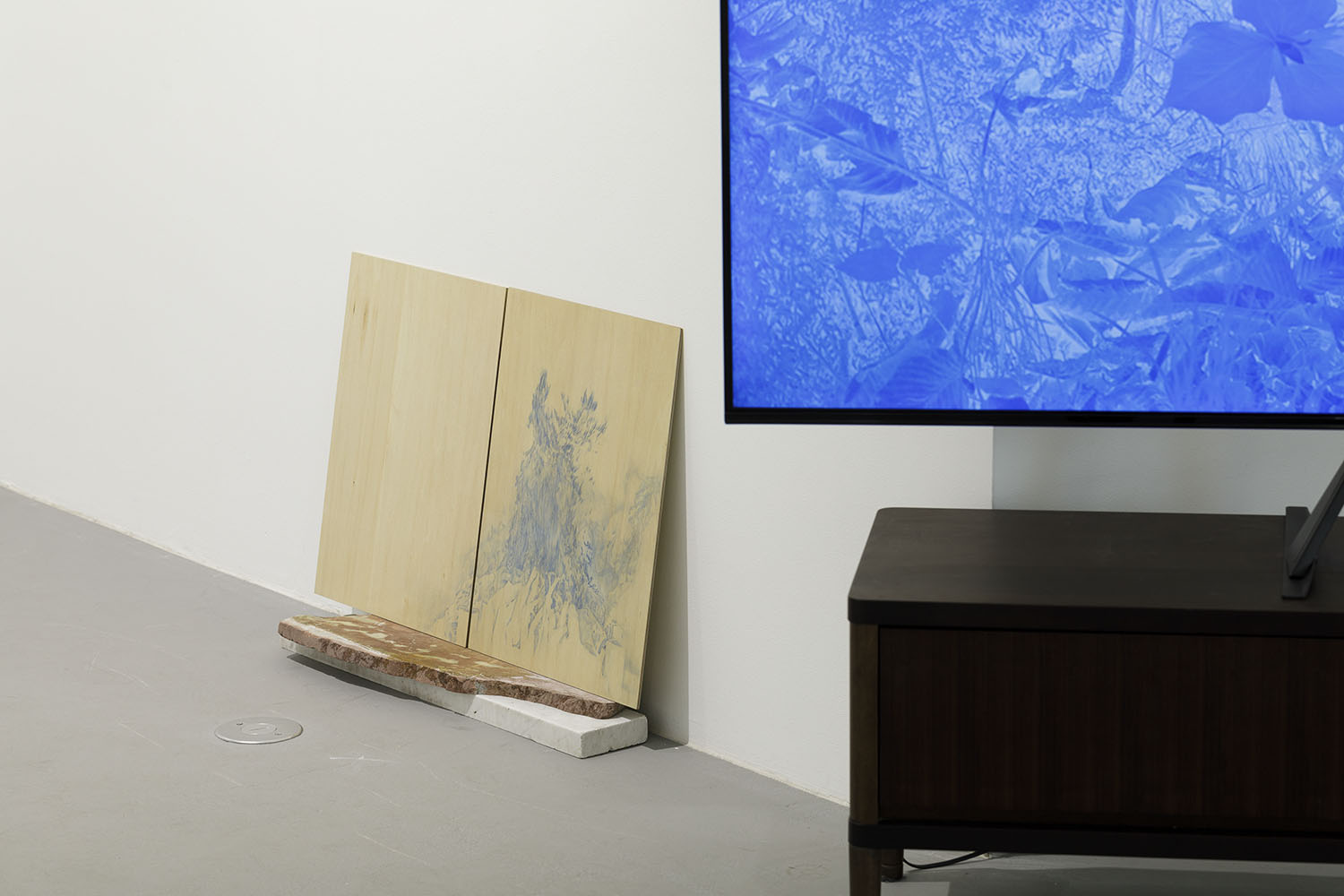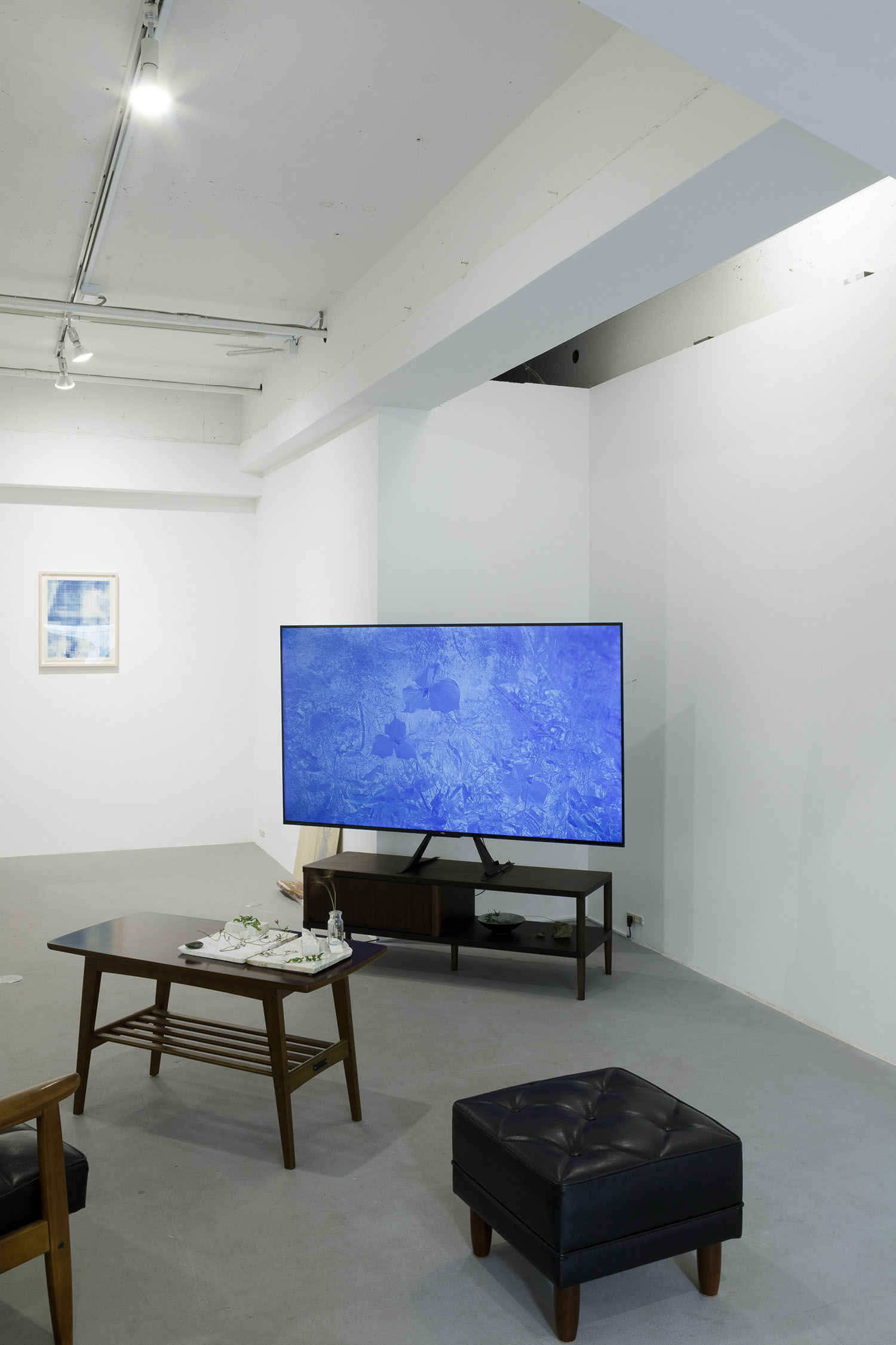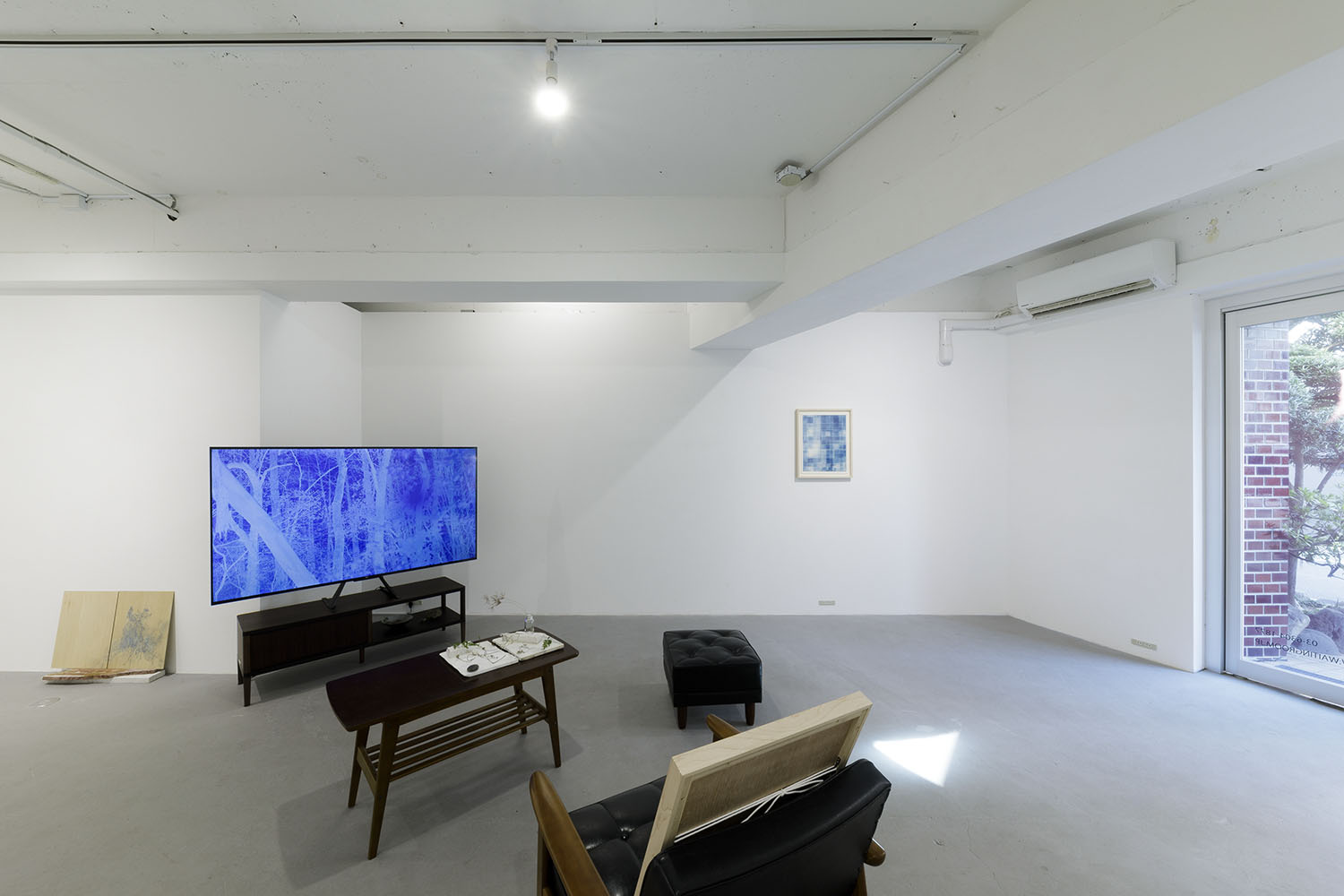 サイアノタイプという写真における古典技法と、生成AIなどの画像生成技術を重ねたとき、どのような「風景」が見えるのか。未来の姿を想像することを「青写真を描く」と言いますが、三宅が実際に滞在していた山荘の家具に座り、現実の時間よりもゆっくりと流れる青い映像の風景を眺めながら、どこかにあるかもしれない・いつかあるかもしれない未知の「風景」に、ぜひ思いを巡らせてみてください。