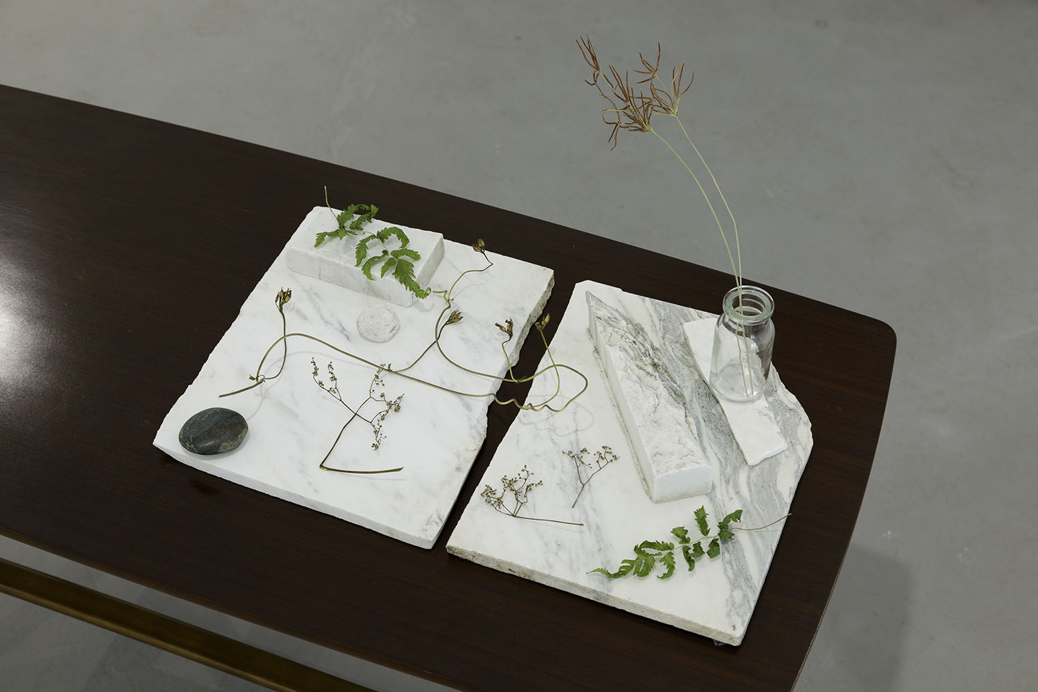 「絵画的な像」を抽出するという試みを続けてきた三宅は、本展で森林や庭園を歩くことから見出した「ランドスケープ(風景/風景画)」についての思索が反映されたシリーズを発表しています。