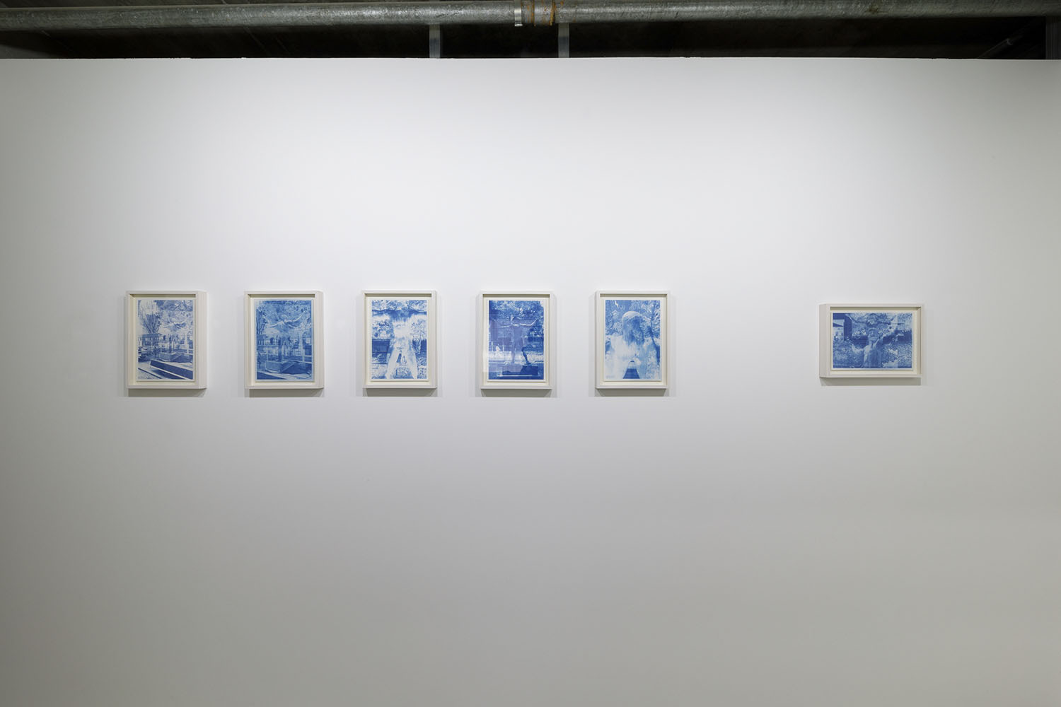 WAITINGROOM(東京)では、2023年10月21日(土)から11月19日(日)まで、三宅砂織の個展『Nowhere in Blue』を開催いたします。三宅はこれまで、さまざまな経緯で出会った既存の画像を、ネガポジ反転させて透明シートの上に描き、それを感光紙の上に重ねて露光することで、ドローイングの「影」を印画するというフォトグラムの手法に取り組んできました。近年では、フォトグラムの制作を通して深めた思考を反映させた映像作品や、日光で感光させるサイアノタイプにも取り組みながら、人間がさまざまなものに眼差しを向け、それを何らかの方法で画像化することや、画像化されたものが共有され、また新たな眼差しが重なっていくという営みの中に存在する「絵画的な像」を抽出するような試みを続けています。本展で三宅は、サイアノタイプの新シリーズと、その思考を反映させた映像作品を初めて発表いたします。それらは、世界的なパンデミックの経験や生成AIの爆発的普及など、劇的に変化し続ける日常を三宅がアーティストとして過ごす中で、森林や庭園を歩くことから見出した「ランドスケープ(風景/風景画)」についての思索が反映されたシリーズになります。