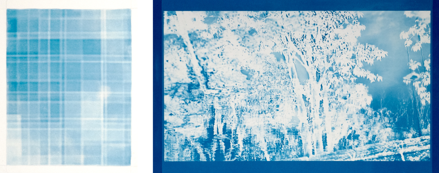 右:“Blue print” 2023, Cyanotype on paper, 400×710mm