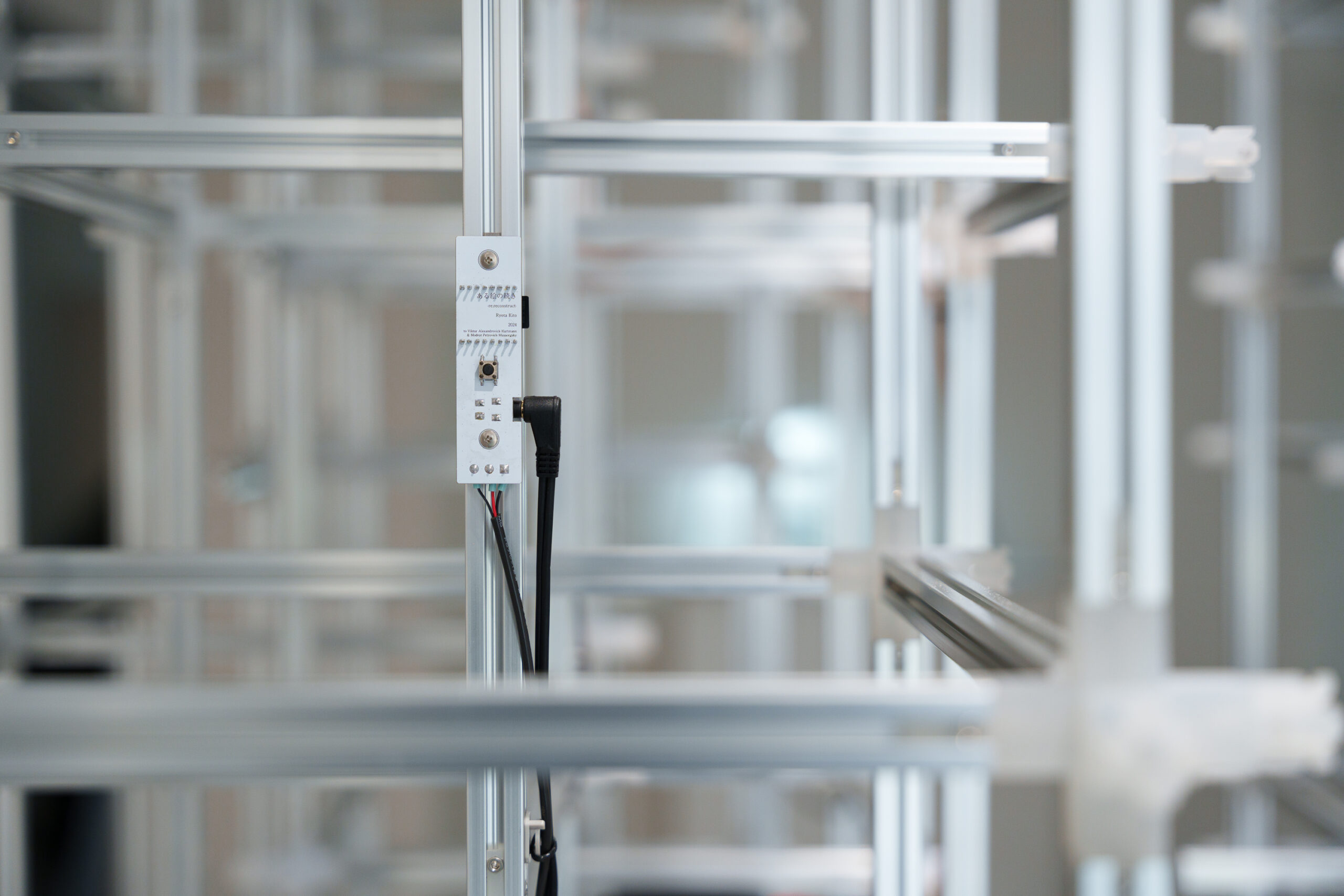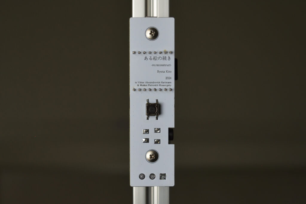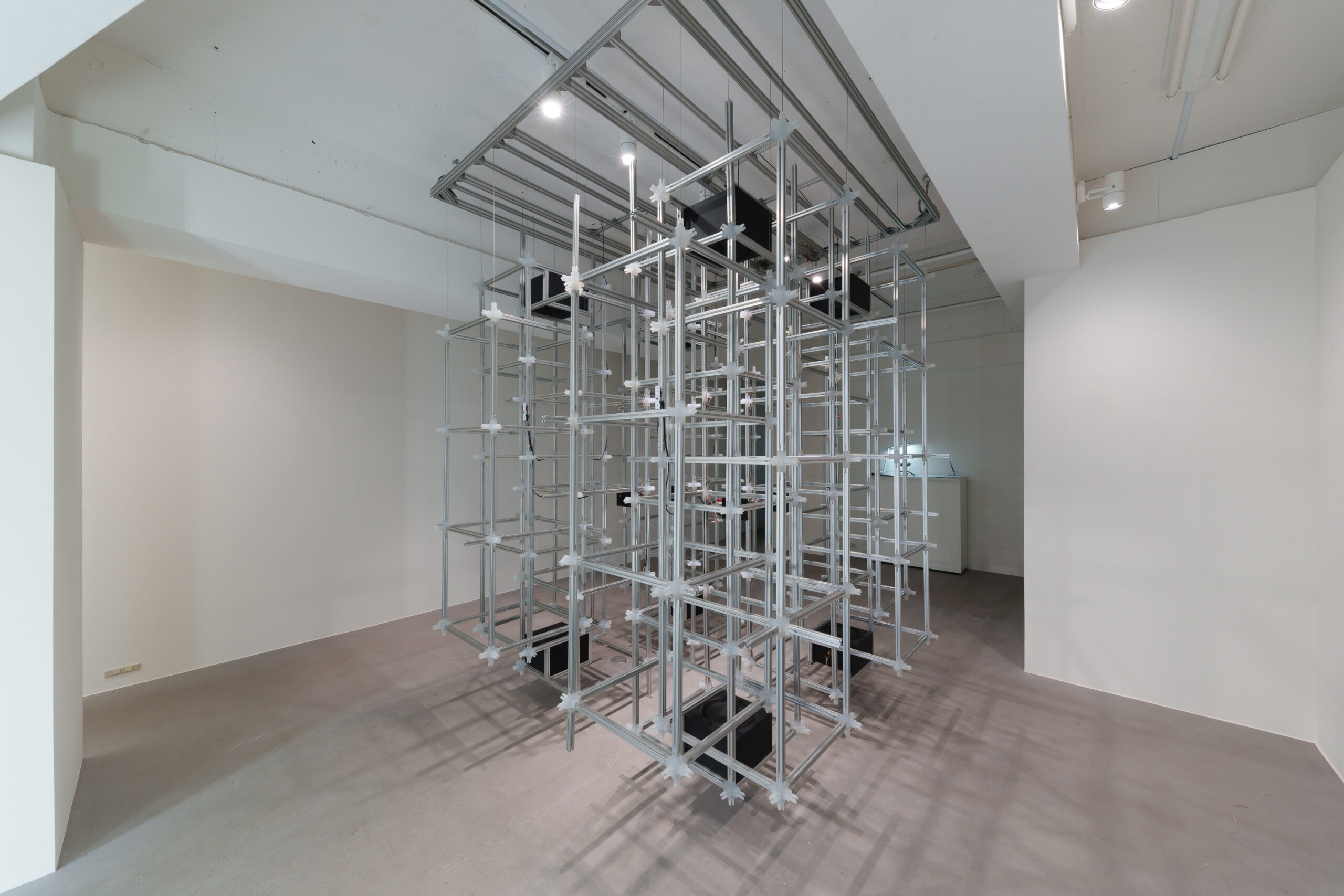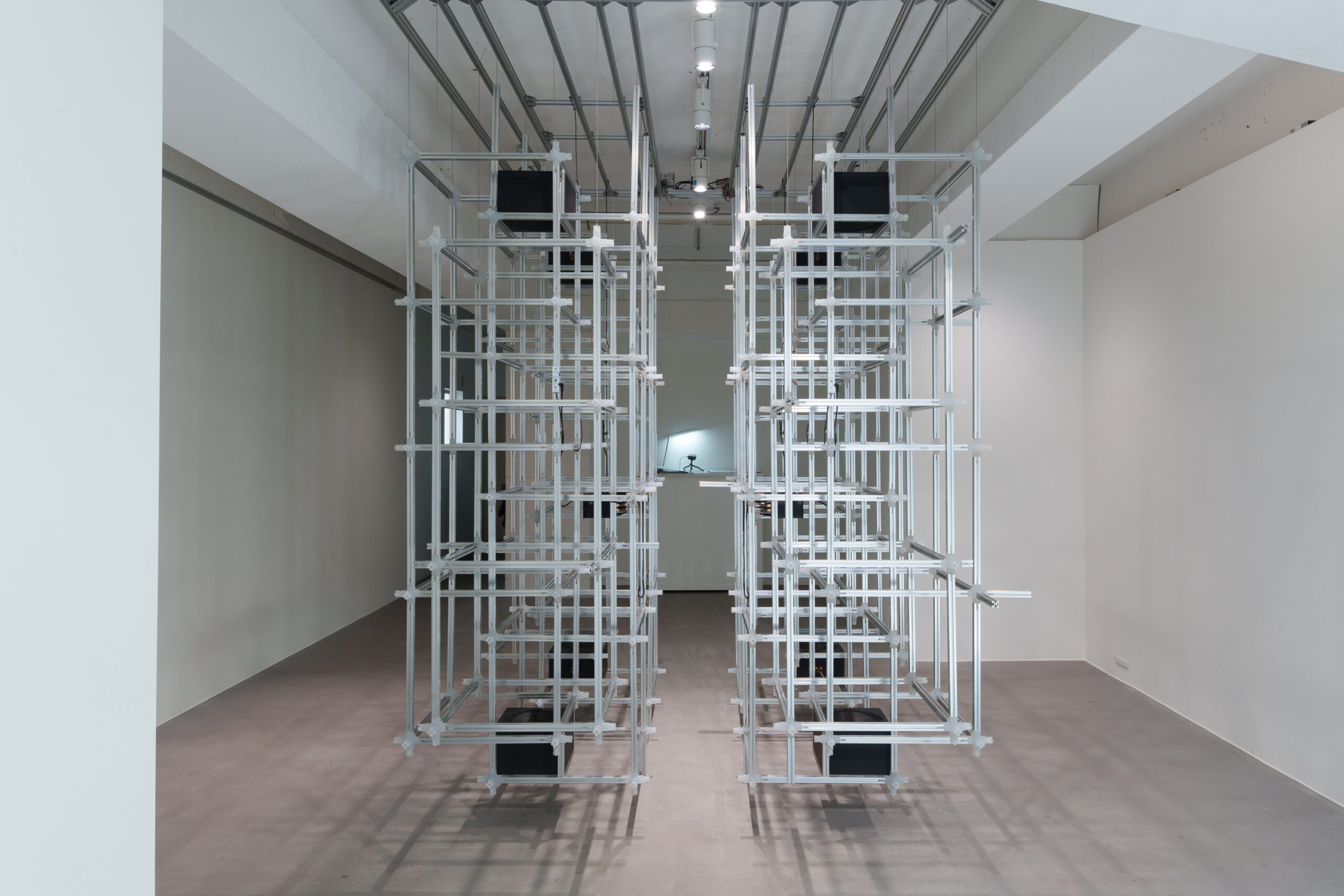 木藤遼太は、自分自身を「あくまでも無数の中の或る個人」と捉え、自身を取り巻く環境や日常の中からすくいあげたテーマをもとに、そのふとした気づきや感覚を普遍的なスケールの問いにのせて作品を制作してきました。 本展でテーマとなっているのは、「永遠性と儚さ」について。モチーフとして選ばれたのは、1874年にロシアの作曲家・モデスト=ムソルグスキーが作曲したピアノ曲《展覧会の絵》。ムソルグスキーの親友であったサンクトペテルブルク出身のロシアの建築家で画家のヴィクトル=ハルトマンが、キエフの門の再建のために案として提出したデッサンがあり、しかしその後ハルトマンは若くして世を去り、門の再建計画は頓挫し、デッサンの建築は幻となってしまいました。親友が叶えられなかった建築という大きな夢を、ムソルグスキーが音楽を通じて実現しようとした作品が、この《展覧会の絵》だと言われています。この曲に出会った木藤は、「曲が進むにつれて、頭の中で壮大な建築が組み上がりクライマックスに感極まるが、何回も聴くうちにフィナーレが訪れるころにどこか悲しさを感じるようになった。」と言います。それは、瞬間芸術とも言われる音楽によって構築された虚構の建築は、決して具現化されることはなく、曲の終了とともに儚く消えてしまうように感じるからだと。「形のないかたちで作られた彫刻」を模索しながら音を素材として制作する木藤にとって、瞬間芸術である音楽のジレンマであるこの儚さをどのように永遠のものにできるのか、《展覧会の絵》との出会いをきっかけに探り始めました。本展覧会会場には、建ち上がっては壊れていくこの音の建築を、何度でも組み直せるように設計された格子状の彫刻に置き換えて設置し、そこを行き来するように流れる音源が、終わりの見えない音楽として空間に留められます。展覧会会期中、相反するふたつの方向を目指す音が会場内でぶつかり合い続け、それは日々記録され、21枚(展覧会会期の日数と同じ)のレコード作品として残されます。果たして、“待合室” の意味を持つこのギャラリー空間で、木藤のいう「限りなく留まりつづける行為としての彫刻」はある種の永遠性を獲得するのか、ぜひともご注目ください。 Photo by Fumi Takata