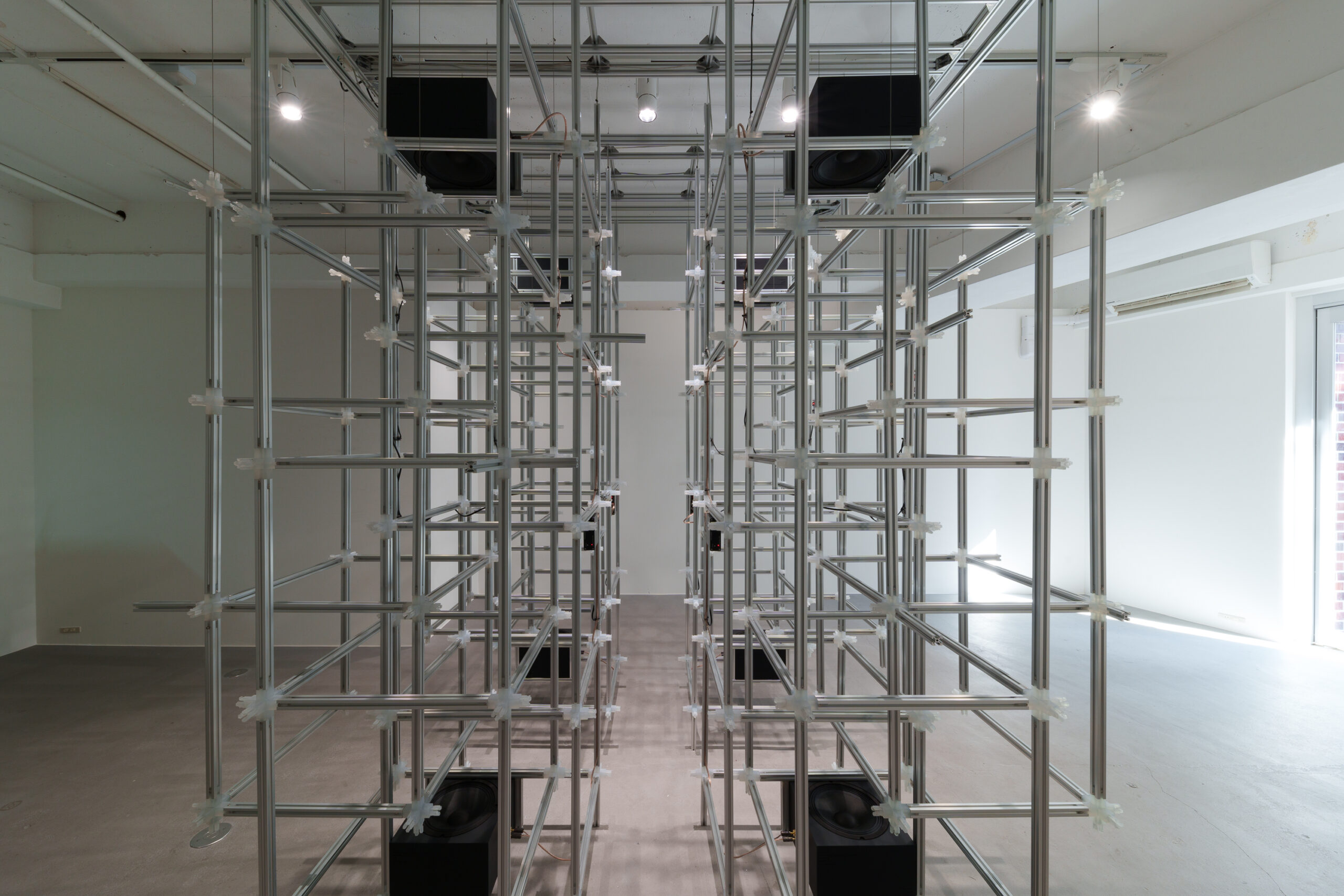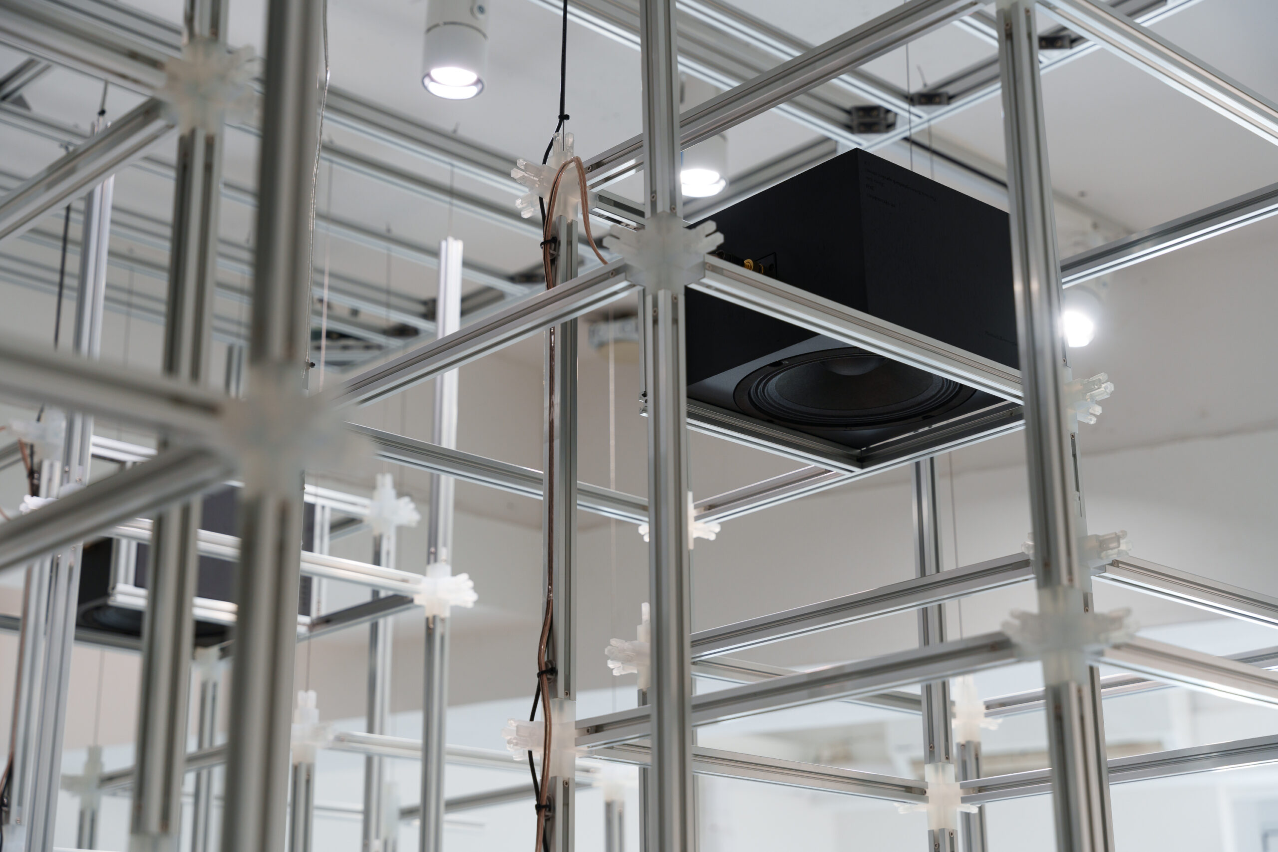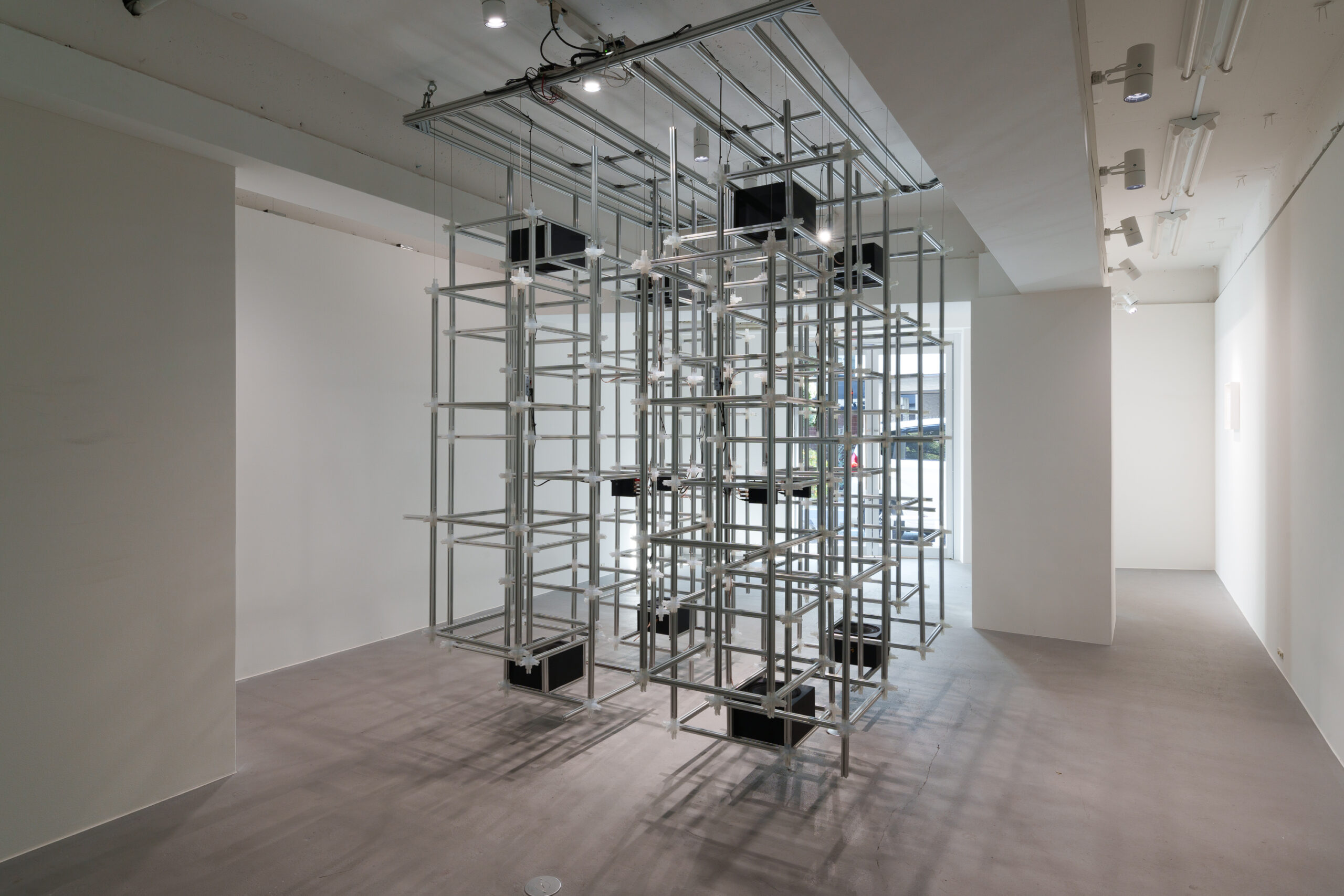 WAITINGROOM(東京)では、2024年12月14日(土)から2025年1月19日(日)(冬季休廊期間:2024年12月29日(日)- 2025年1月7日(火))まで、木藤遼太の当ギャラリーで初めて、そして木藤自身のキャリアの中でも初めての個展『ある絵の続き / re-reconstruct』を開催いたします。木藤は、「彫刻」という最も物質性の強いメディアを自身の制作手法の中心としつつも、「形のないかたちで作られた彫刻」を模索しながら作品を制作しているアーティストです。近年では、『東京藝術大学修了作品展』(2024年)で発表した《82番目のポートレイト》や、『ICCアニュアル 2024 とても近い遠さ』(2024年)で発表した《M.81の骨格——82番目のポートレイト》など、「音」を素材の中心に制作と発表をしてきました。木藤自身にとって初めての個展となる本展でも、近年の実践と地続きになった「音」を素材の中心とした新作を制作しました。瞬間芸術ともいわれる音楽を、どうやって空間内に留めるのか。この問いと共に「永遠性」についても考えながら、何度でも組み直せるように設計された格子状の彫刻、そこを行き来するように流れる音源、物理的な記録媒体=彫刻としてのレコード作品が、インスタレーション作品としてギャラリー空間内に展開されます。ぜひご高覧ください。 『ある絵の続き / re-reconstruct』メインビジュアル Photo by Fumi Takata