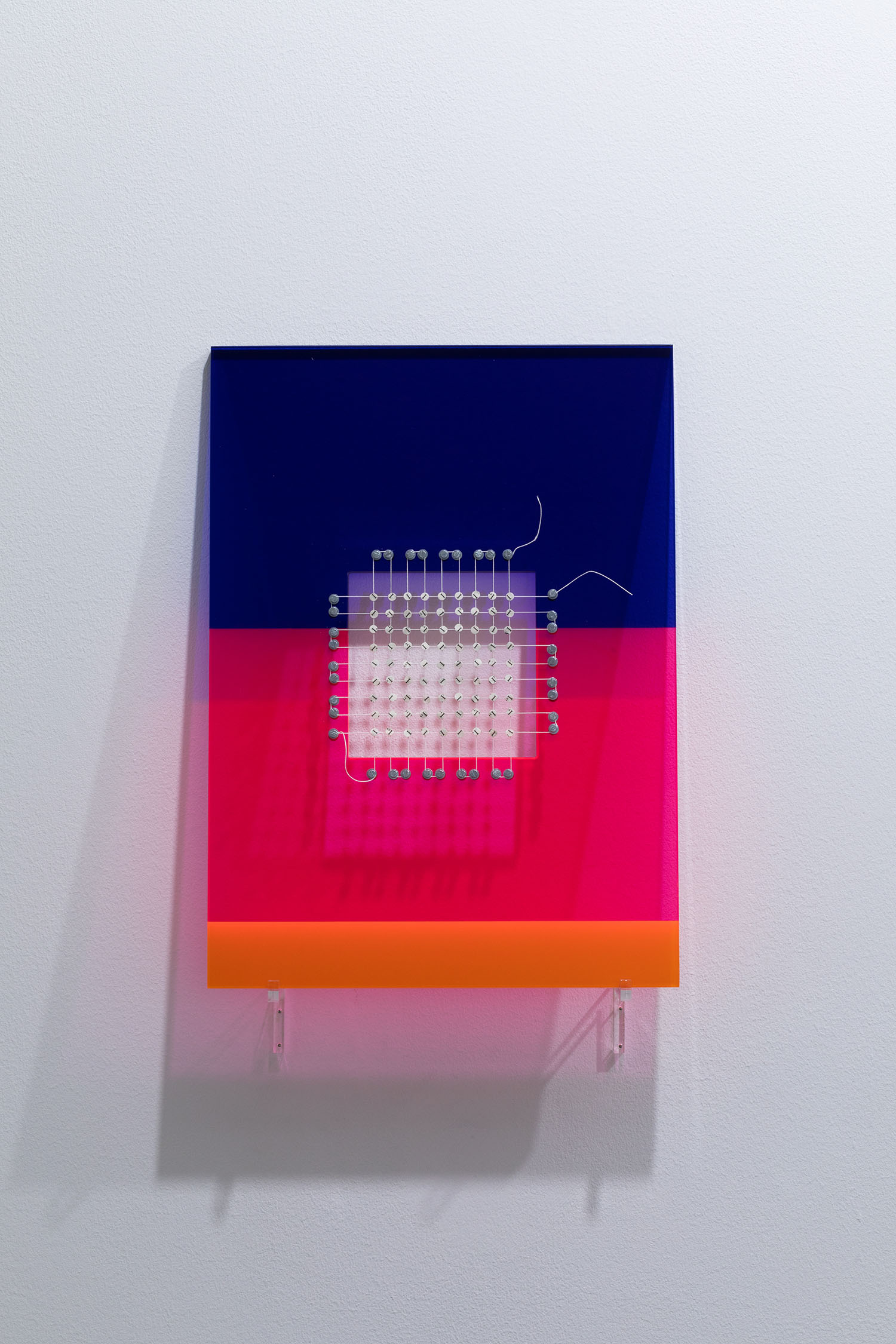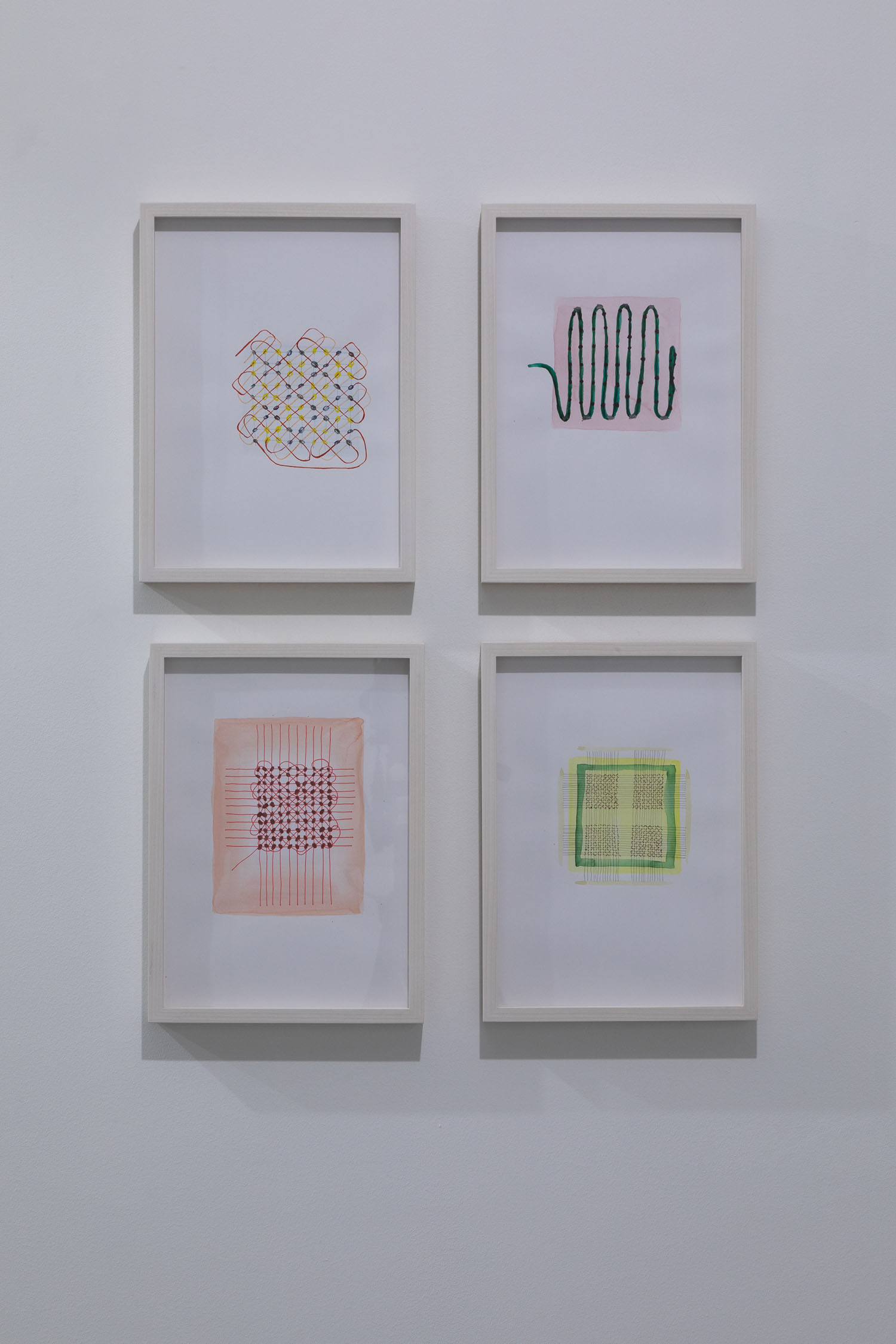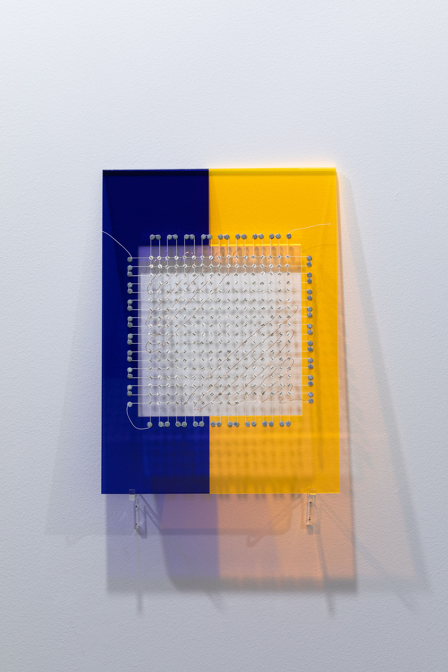 本展覧会で発表される新作群に特徴的なのは、織る・編むという行為です。繊維を縒り糸にして、それを平面にするという、ミニマルで気の遠くなるような作業の反復は、産業革命から半世紀が経った現在も人の手で行われ続けています。川辺の作品は、何億光年もの距離も、何億年もの時間をも越えて、思わぬところに存在することになったモノたちの物語に焦点を当てることで、定められた国境線や月面着陸といった人類の歴史さえも、紛れもなく人間の時間軸の中で編み上げられたものであることを示唆しているようです。