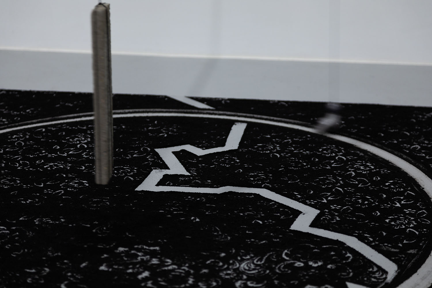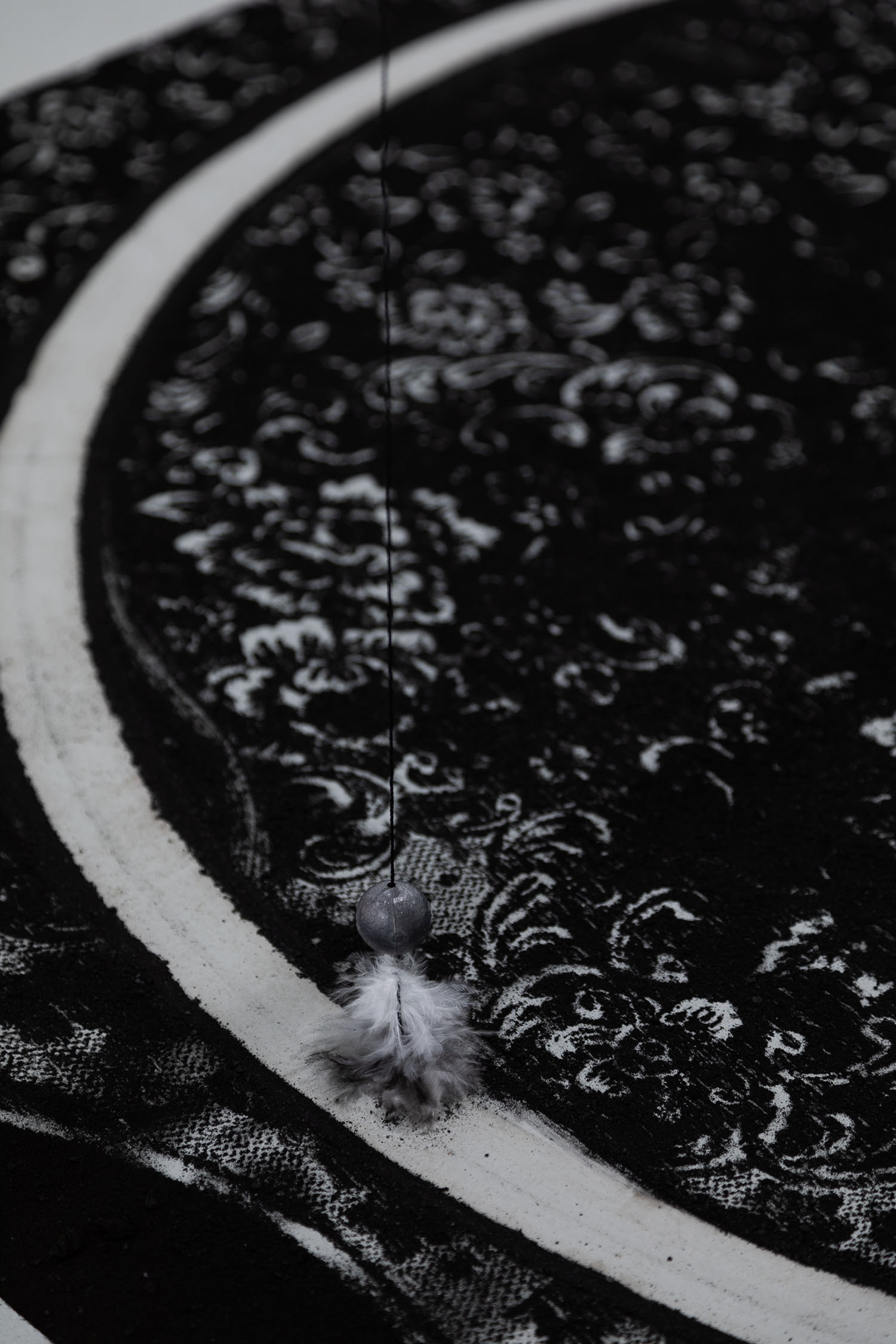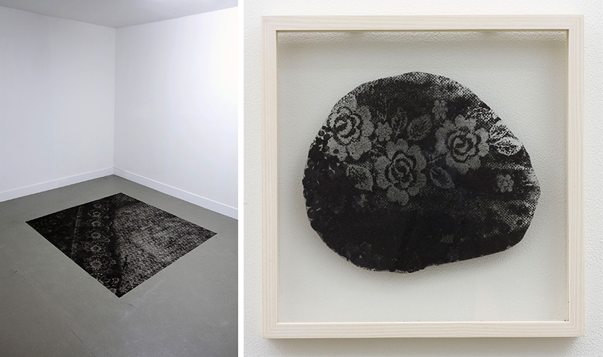 (左)『Untitled』2011年、木炭の粉、2000 x 2000 mm