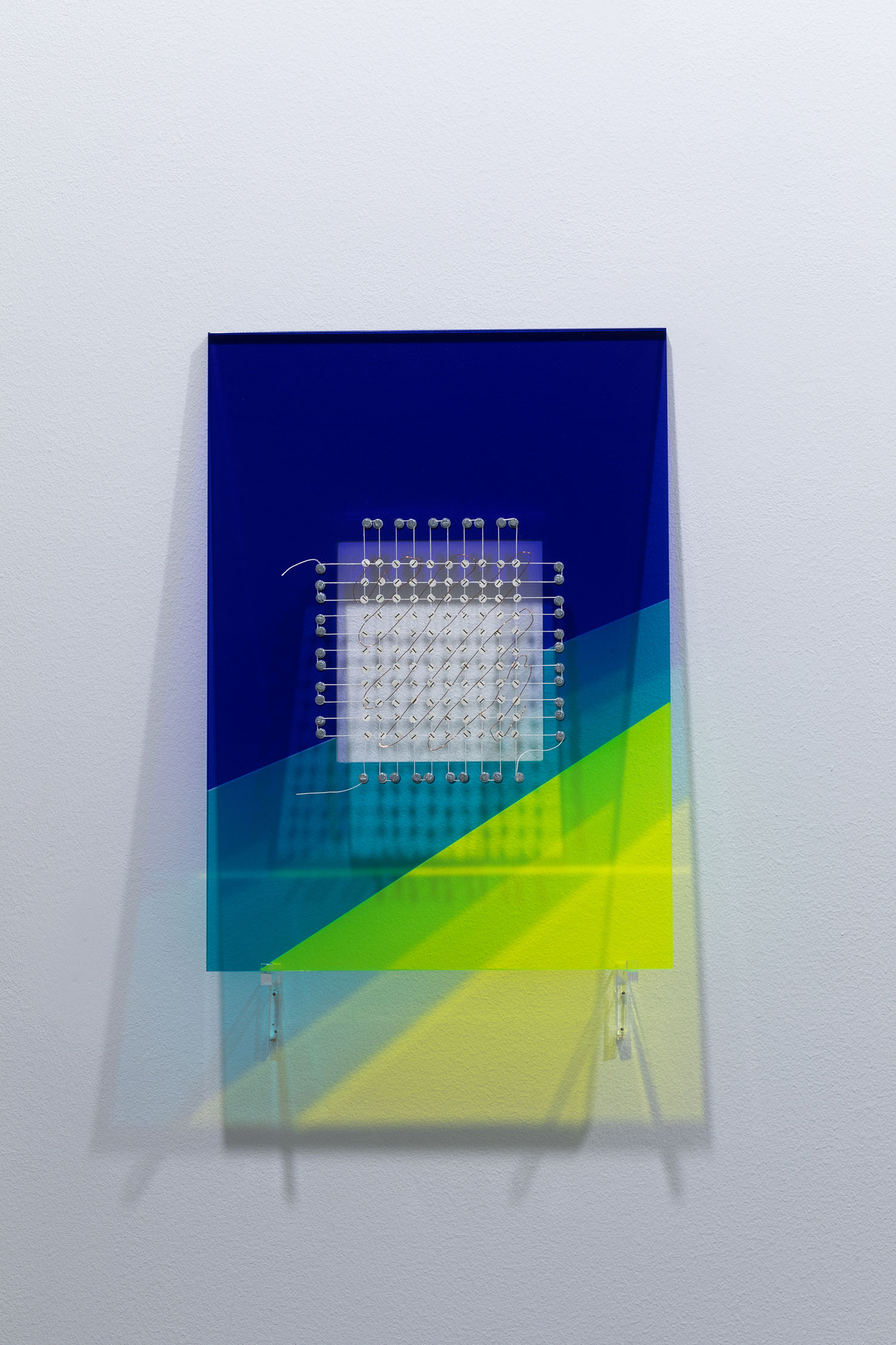ドイツと日本の2国を拠点に活動する川辺は、例えば時勢によって流動的に分断される国境線のような境界を「ダイナミックな『変換』が絶えず行われ続ける混沌とした場所」と捉えています。「私たちの社会の中にある様々な境界線を観察し、抽出し形にすることは、その時代の輪郭を残すことになるのではないか。」と彼女が考えるように、川辺は適切に選びとられたマテリアルを用い、この時代に、この世界で巻き起こっている「変換」に形を与えることを、作品制作を通して試み続けています。