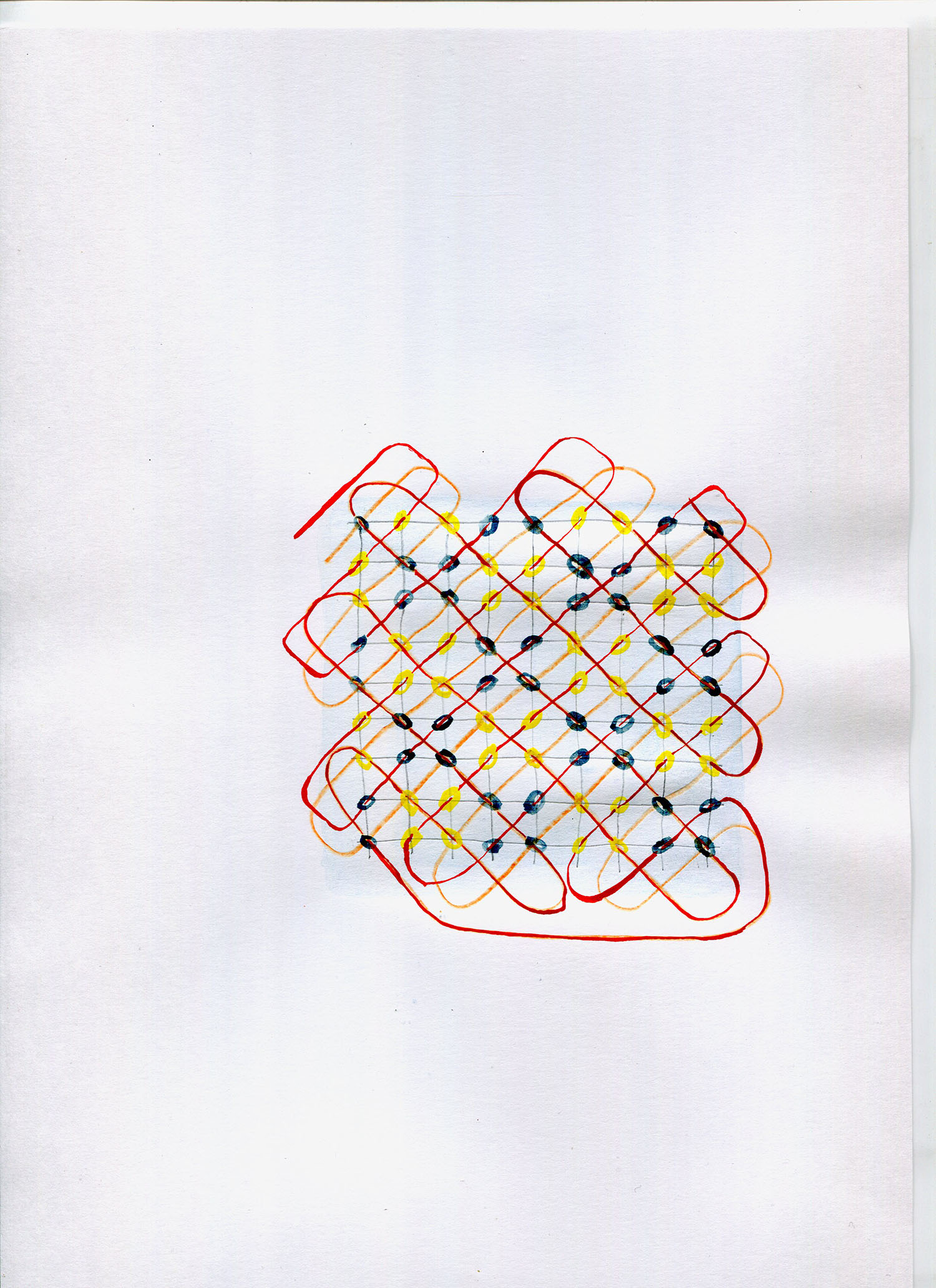 アポロ計画で使用されたアポロ誘導コンピュータにはロープコアメモリが使われた。磁石を通した銅線をロープのように纏めることで、小さい面積に多くの情報をセーブすることができたからだ。ロープコアメモリは別名LOL/リトルオールドレイディと呼ばれ、メモリの製造を担っていたのは女性の工員たちだった。当時の生産工場の写真を見ると、まるで織物工場のように、女工員たちがひと針ひと針、銅線を基盤に縫い付けて行っている。織る、編む技術は古来から続く人類特有の最も古い技術のひとつだ。そして、そのフレキシブルでどこからでも増幅可能な構造は、現代社会の私たちの生活を覆い、目に見えない紐付けで個人を絡め取ってゆく、システム技術に繋がってゆく。(中略)