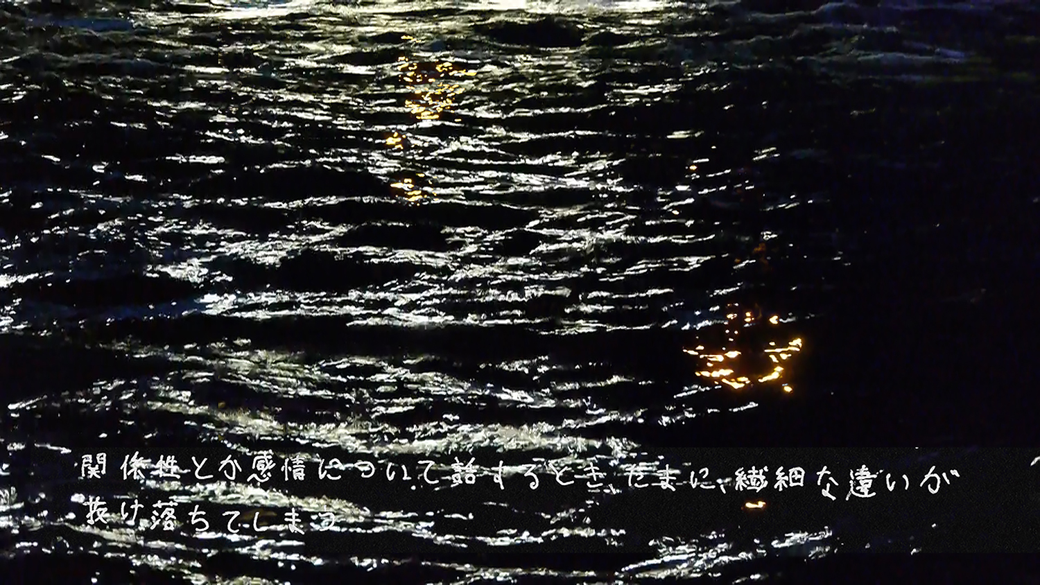 水面に反射している動き続ける光が映し出されています。ハンブルク在住だがドイツ出身ではないアーティストたちが語る「よそ者」としての自分を内省する声と、その光の動きはシンクロします。